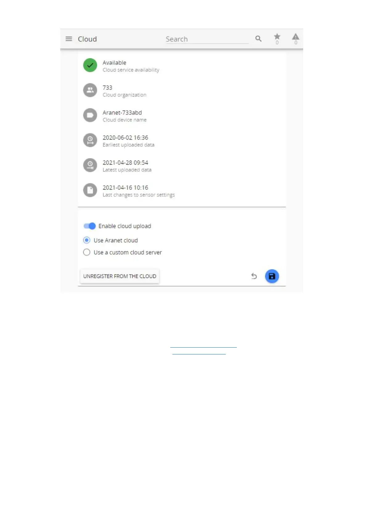 You can pause uploading sensor data by switch off “Enable cloud upload’. If you wish to unregister Aranet