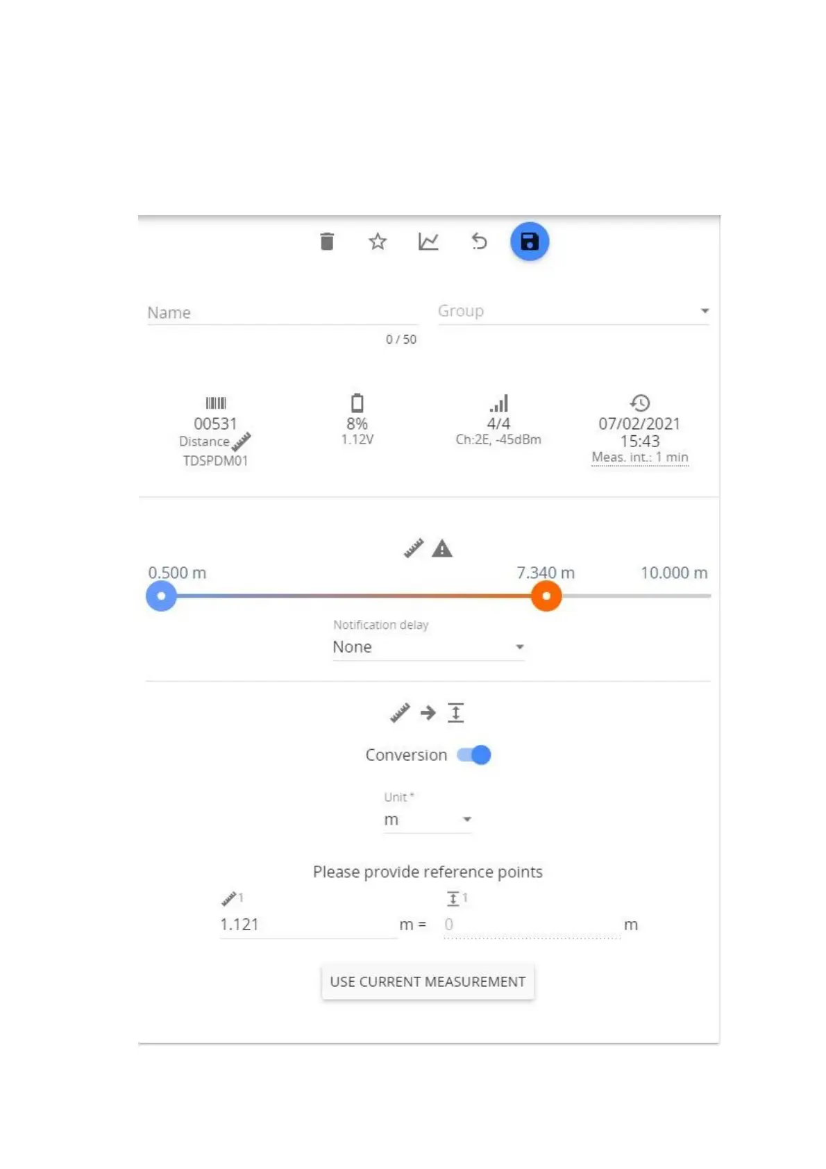When pairing Ultrasonic Distance sensor, it is possible to set measurement thresholds and reference point, if