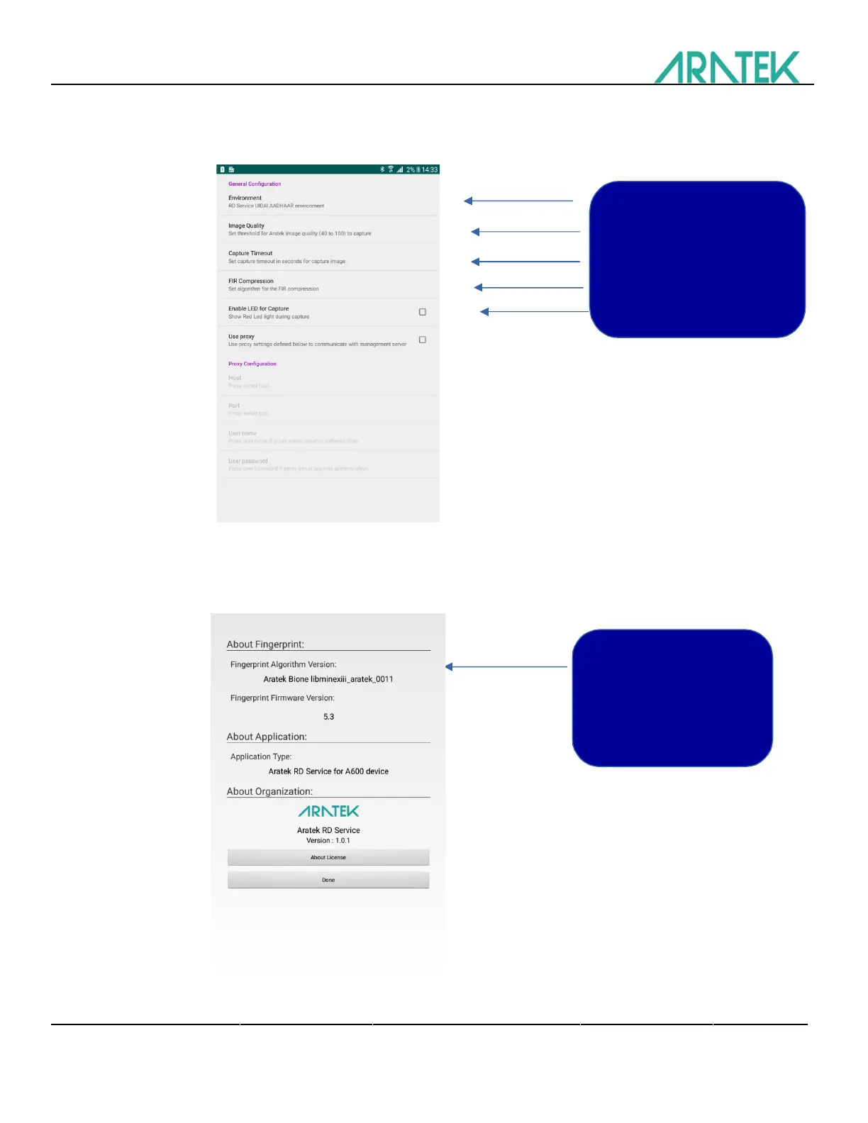 Aratek A600 - Editing General Configuration; Viewing Firmware Details