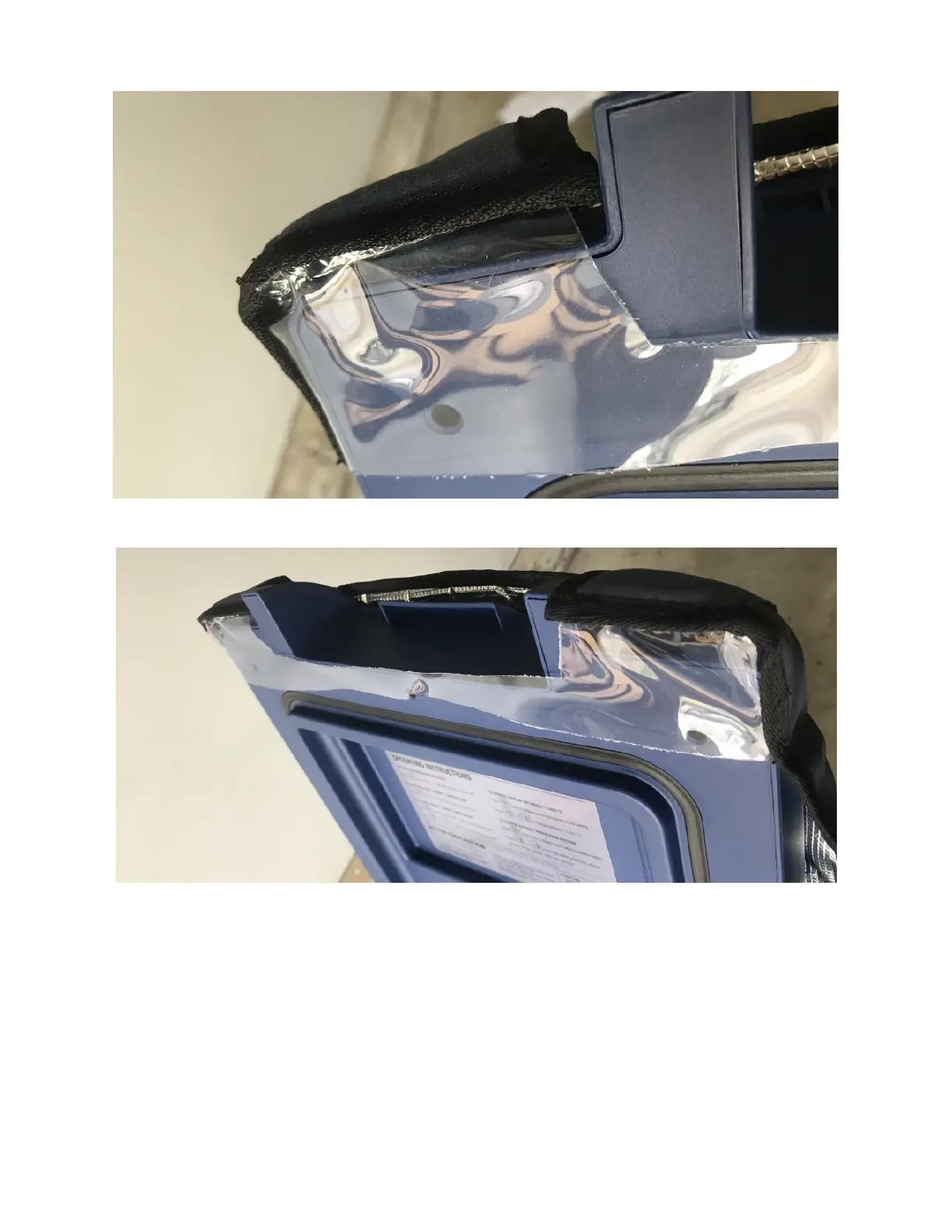 4. Ensure the clear plastic corner is tightly secured to both top corners of the lid (Figures D & E).