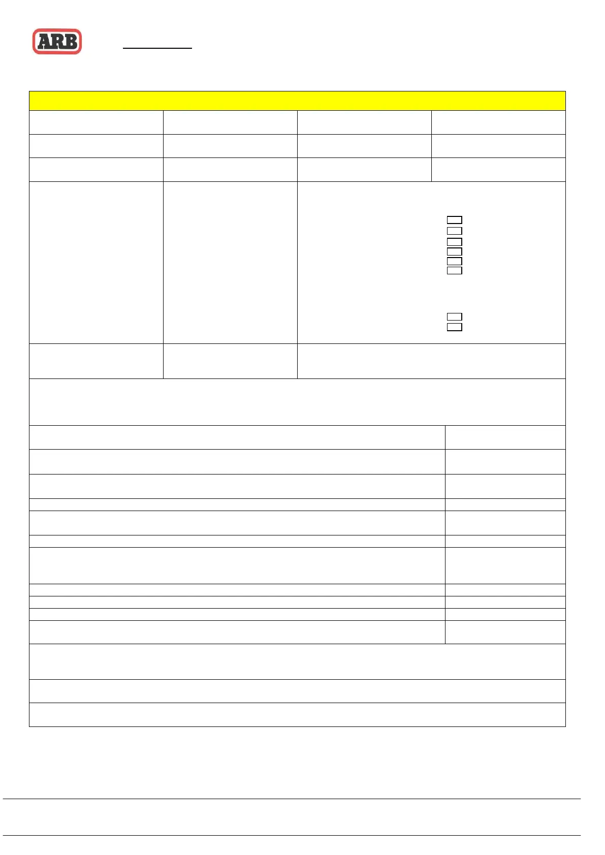 SECTION 8: ARB FITMENT CHECKLIST (TO BE FILLED IN - RETAIN THIS RECORD).