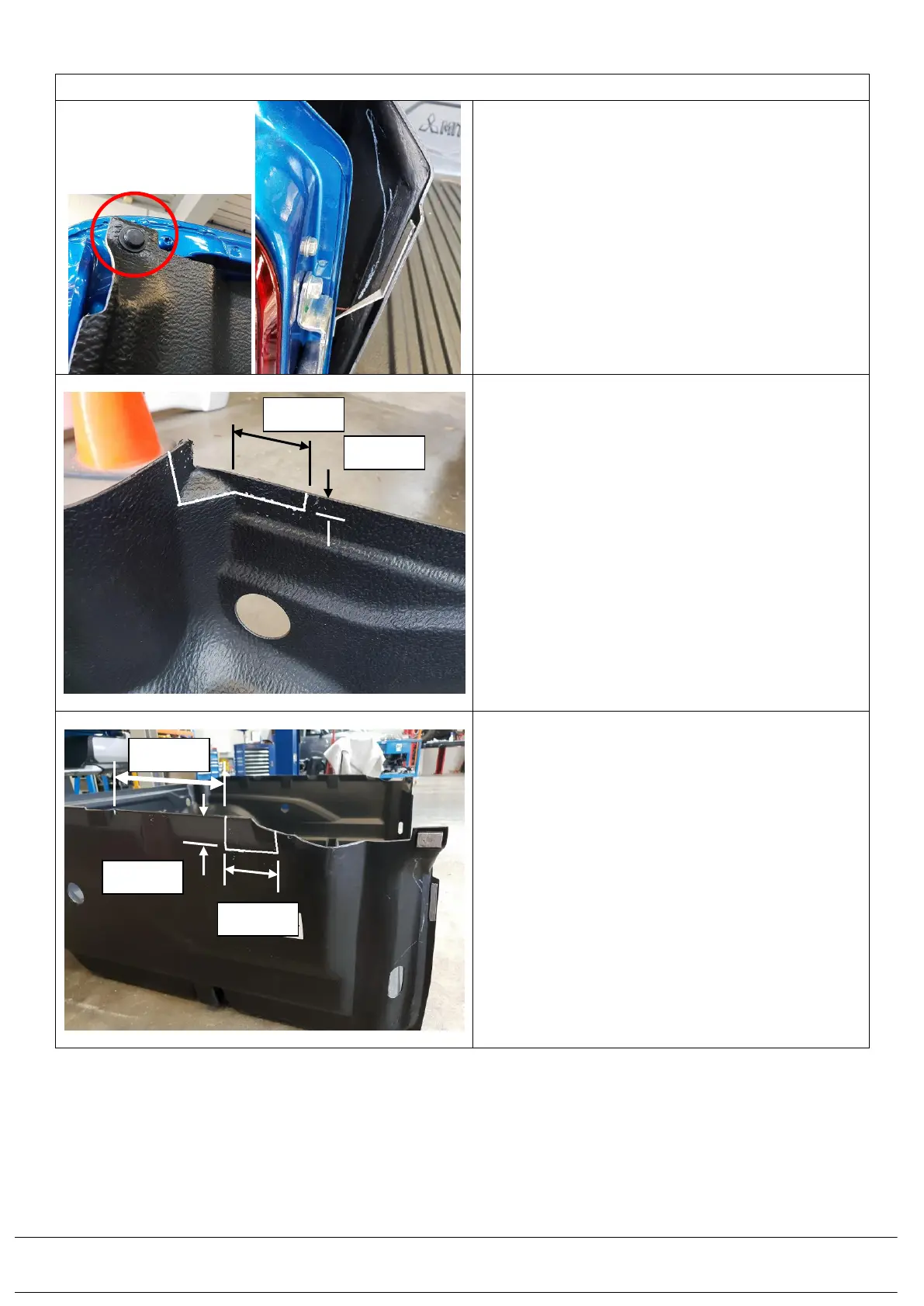 6.24) At the rear LH Corner of the bed liner mark out