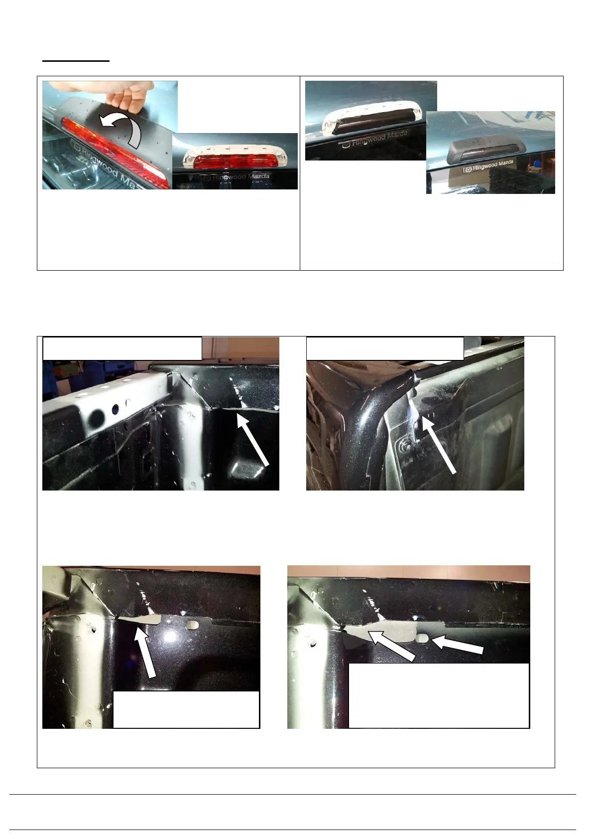 2.1) Inside of the vehicle’s tub side rail at front corner, locate the hole in the side rail in the tub and push one of the
