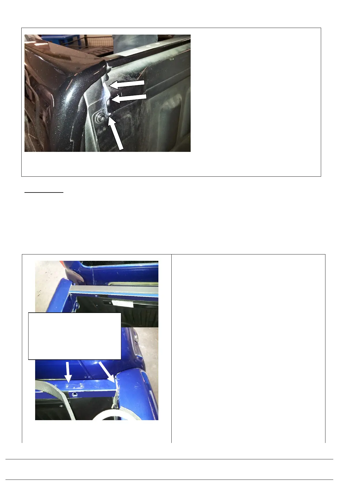 If the vehicle is not fitted with a bed liner, remove the lower most tie down hooks in the front and rear tub corners.