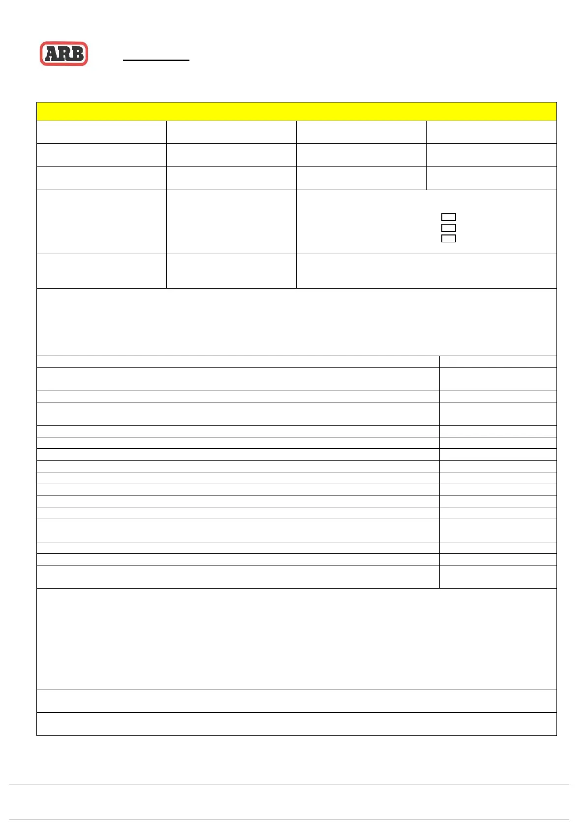 SECTION 8: ARB FITMENT CHECKLIST (TO BE FILLED IN - RETAIN THIS RECORD).
