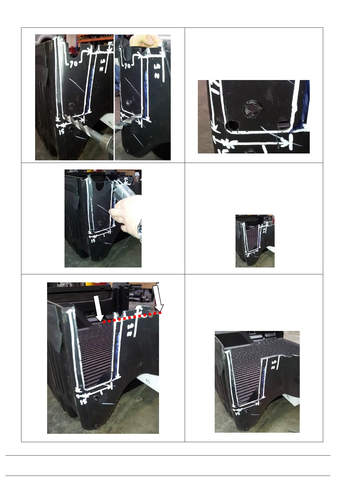 1.9) Drill the lower corners of the bed liner with