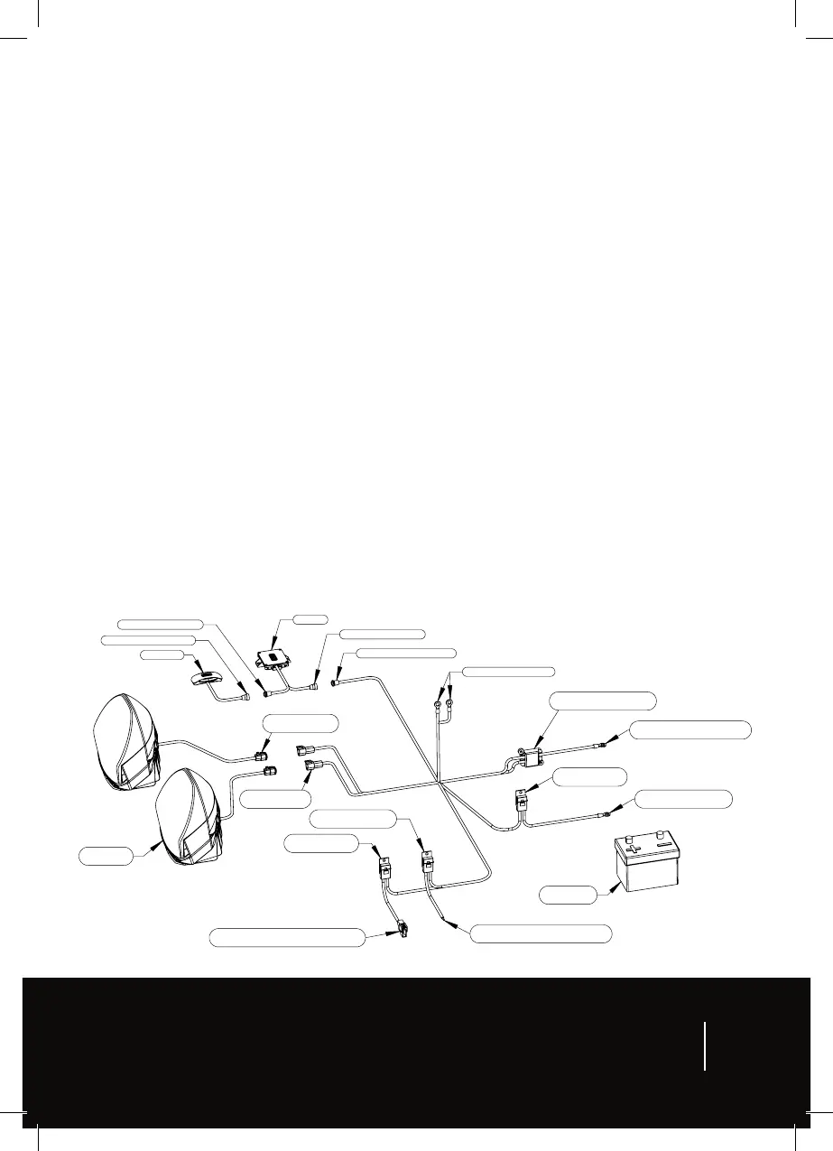 12. Connect the driving lights terminal and LCM terminal to the batery positive terminal.