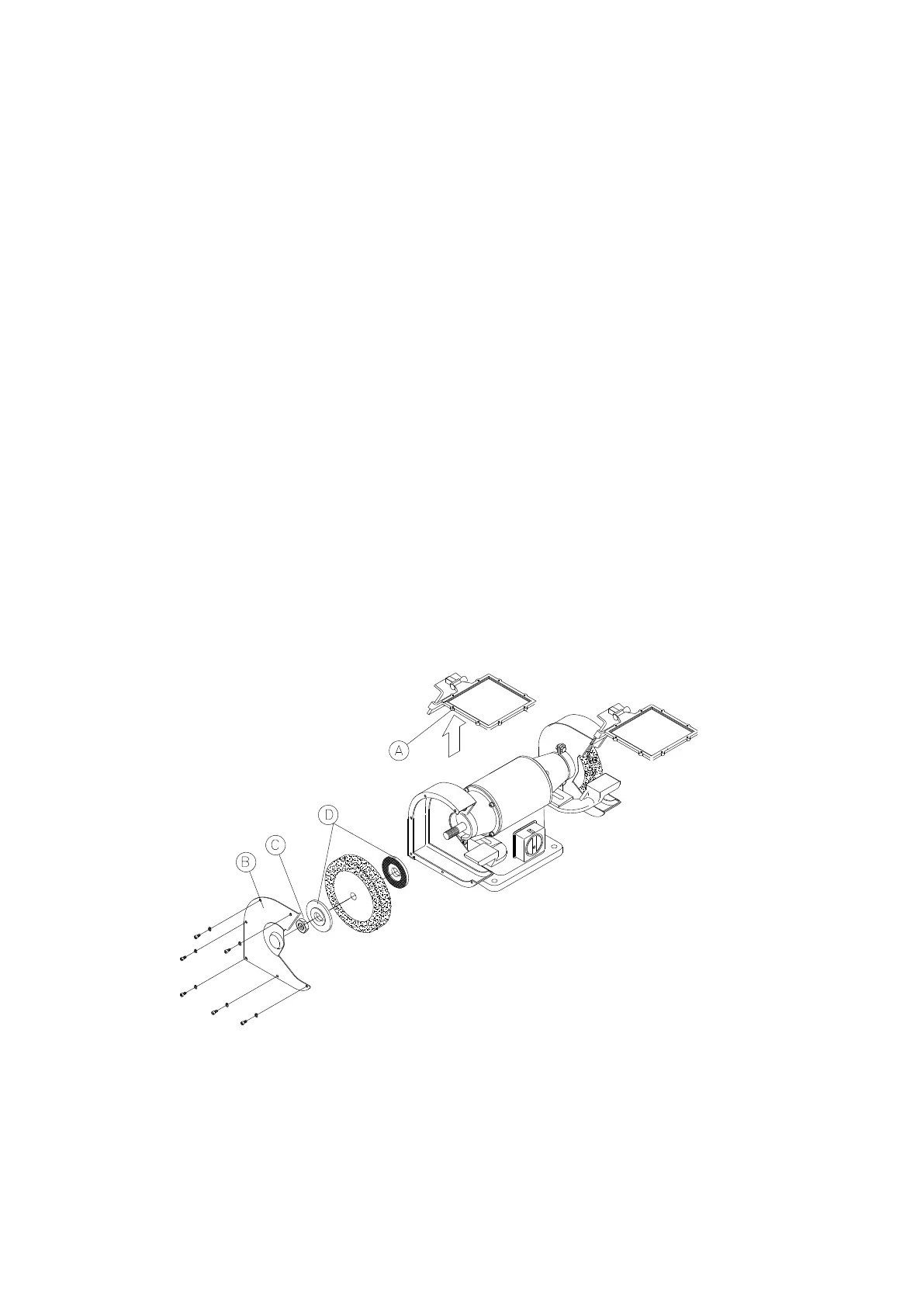 The new grinding wheel is mounted between the two flanges (D) and the lock nut