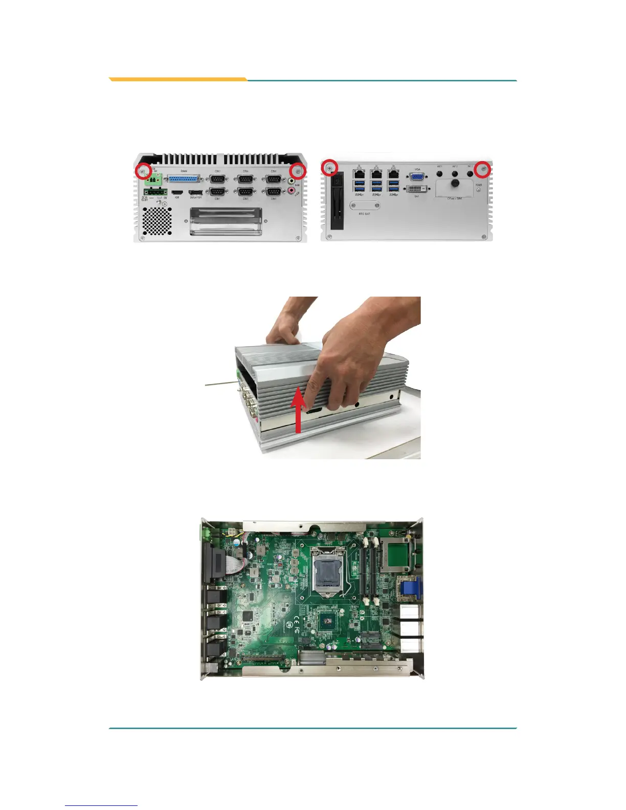 3. Carefully lift the top cover and then completely part the top cover from the