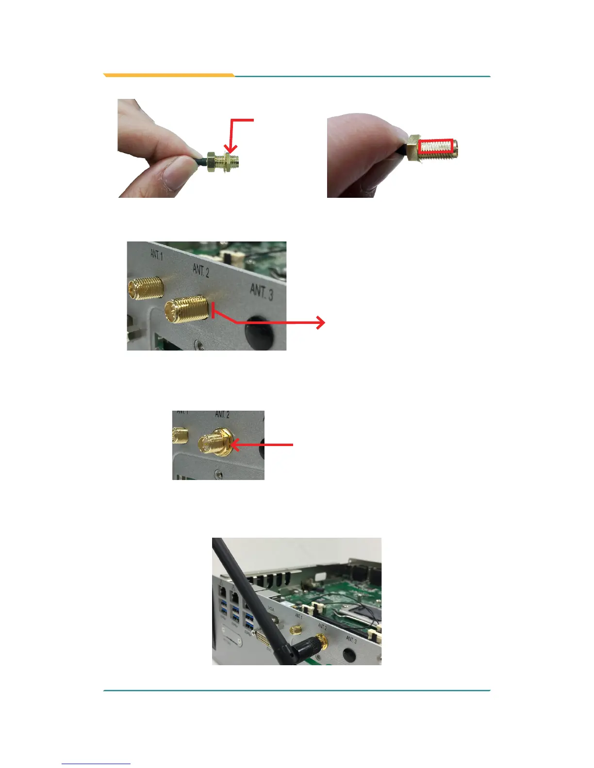 11. Mount the washer rst and then the nut to the SMA connector. Make sure