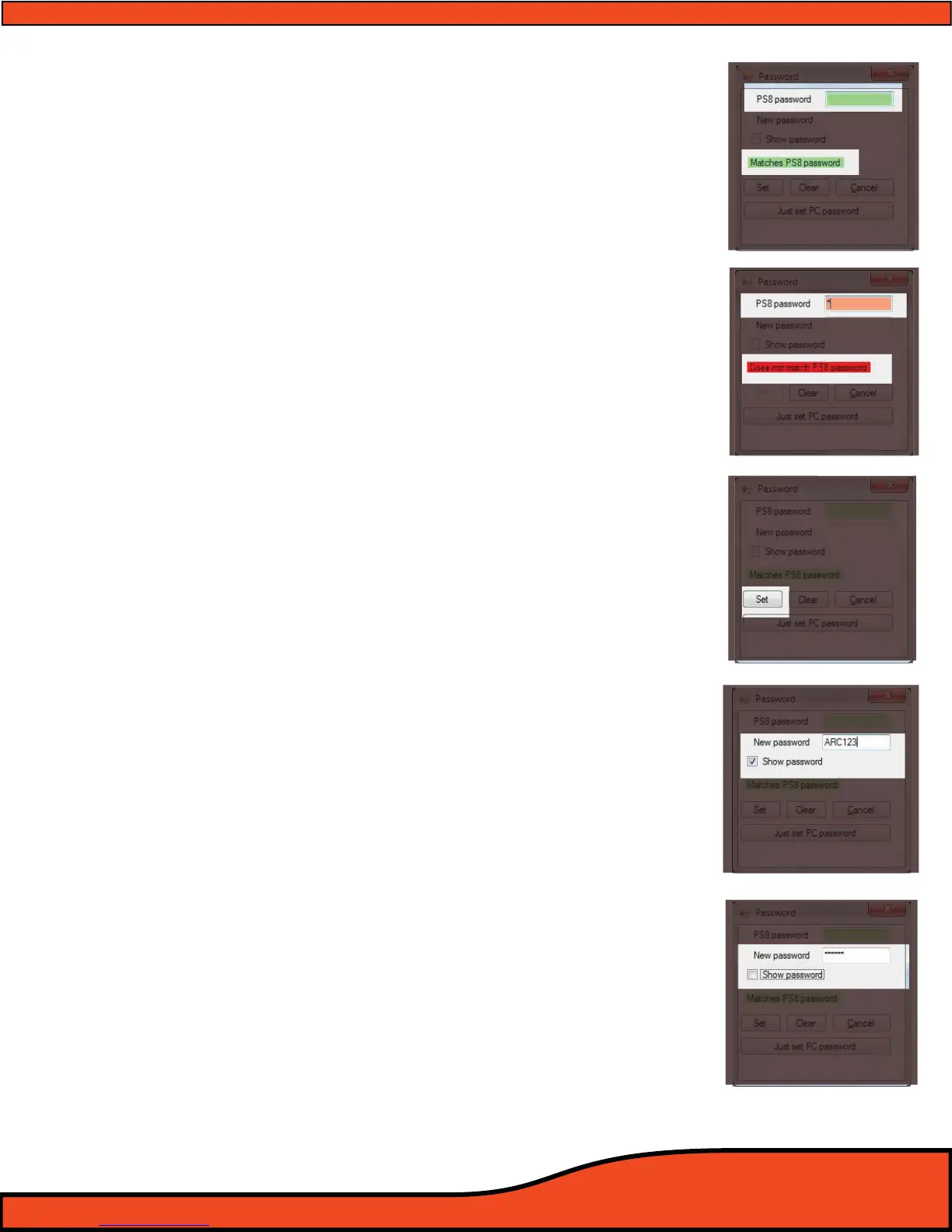 re-enter a new password that matches to the PS8.
