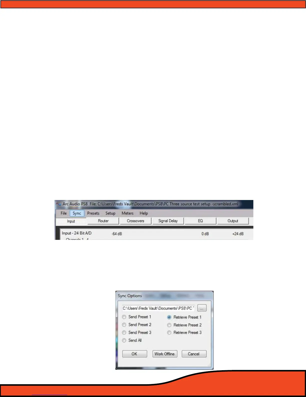 settings to and from the PS8. Uses may load complete setting le packages from their PC and send multiple or