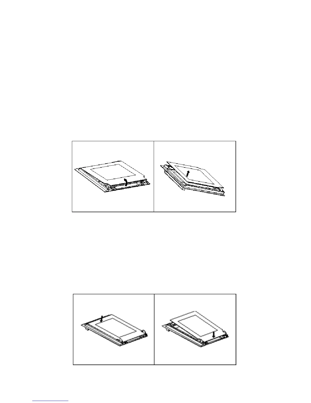 upwards, then pull the top of the glass panel upwards until the top also pops out.