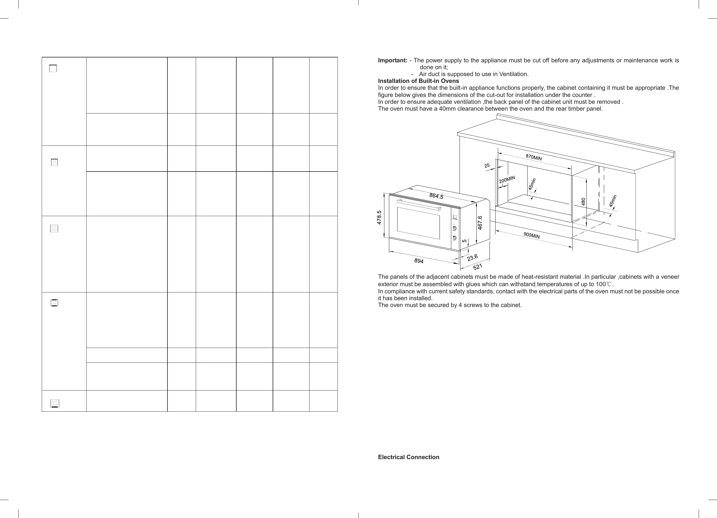 In order to ensure that the built-in appliance functions properly, the cabinet containing it must be appropriate .The