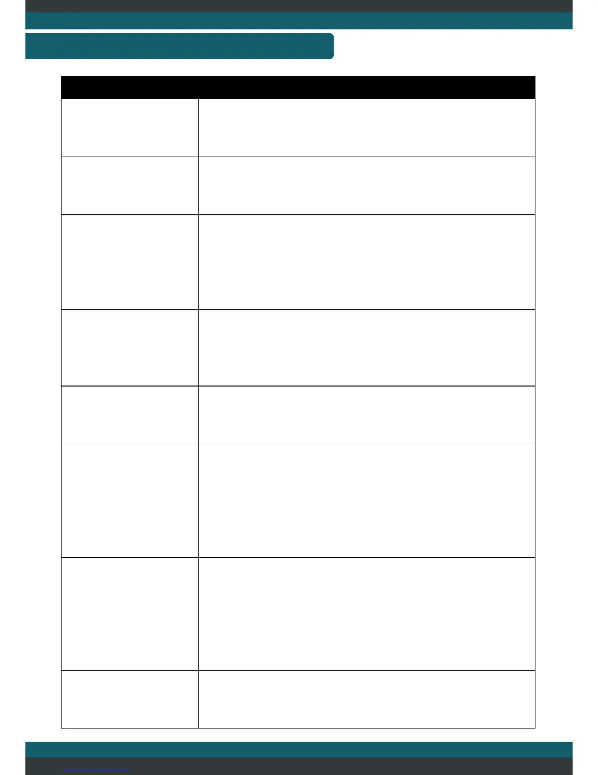 TROUBLESHOOTING TABLE