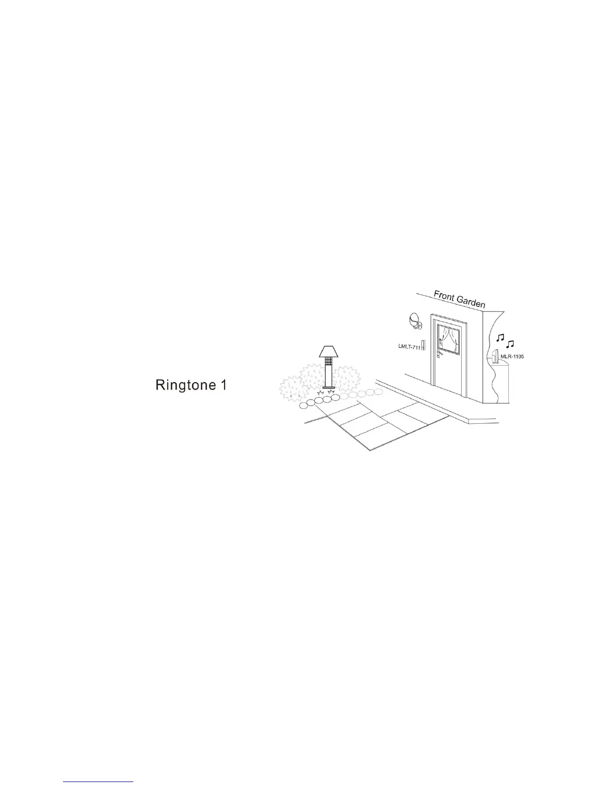 * When people push the unit button, the signal transmits to MLR-1105 to make ringtone 1 sounded as door bell.