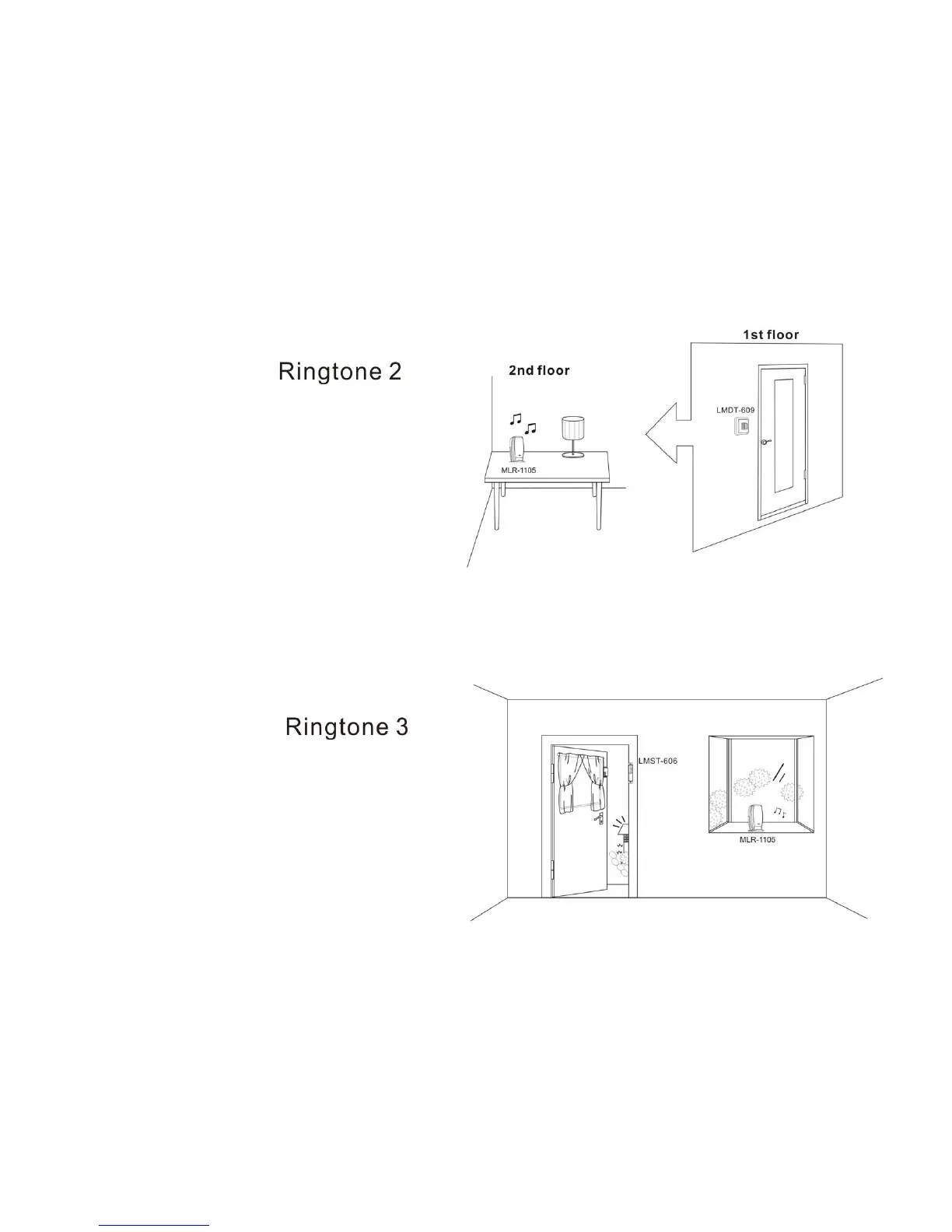 When people open or break in the door (or window), detach parts of LMST-606 sending signal to MLR-1105 making ringtone 3 sounded as