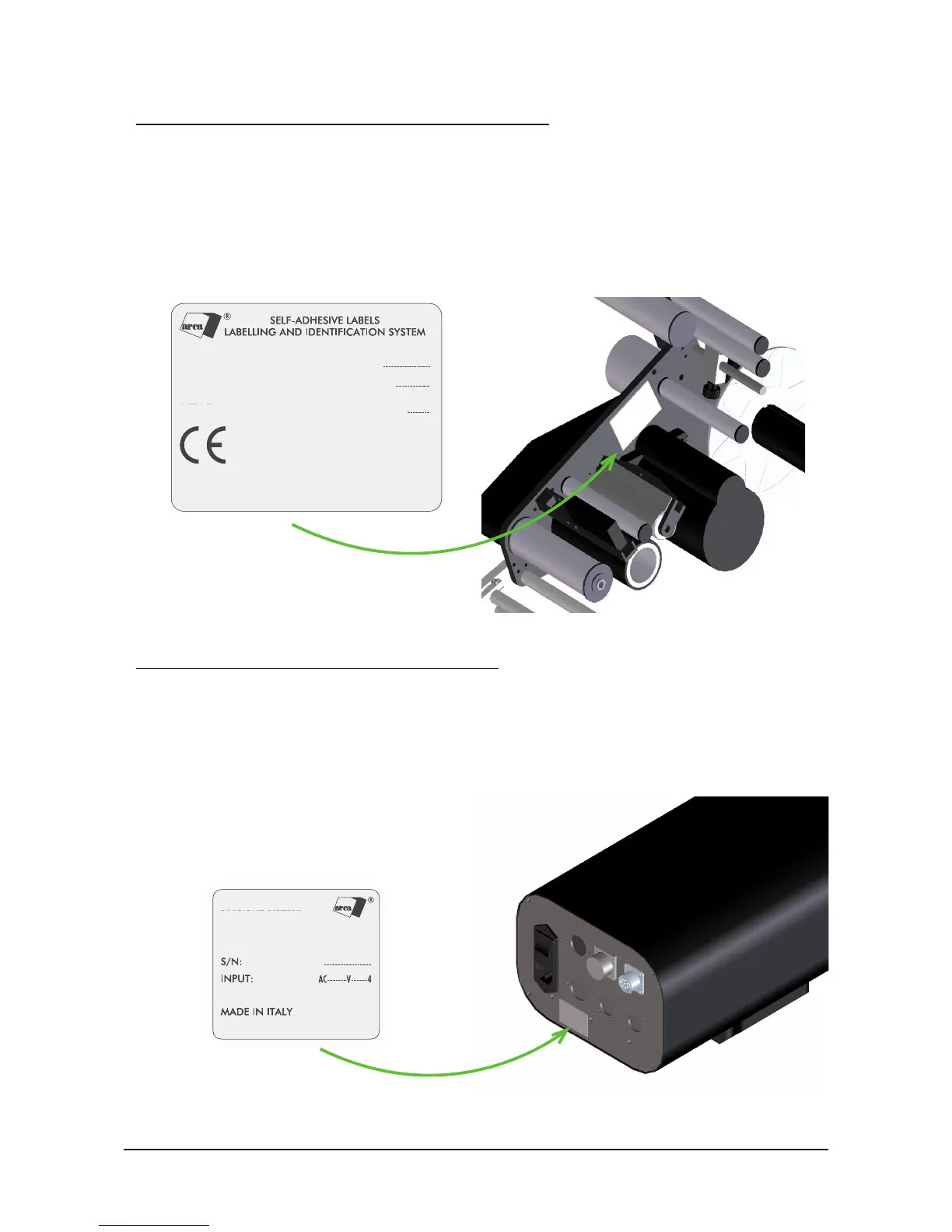 The identication of the labelling machine you purchased can be performed through the identication plate.