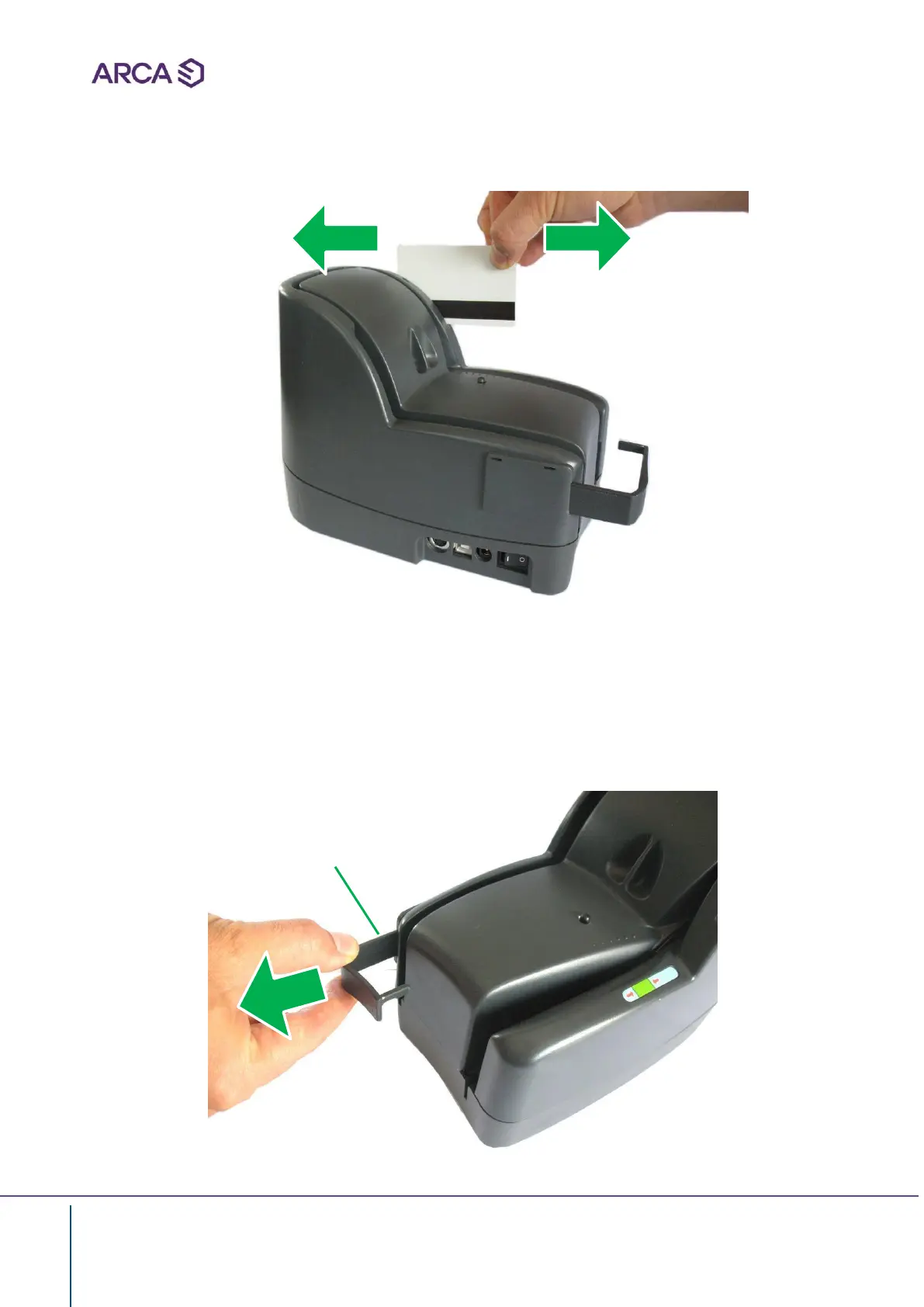 • Pass the magnetic card through the reading slot with the magnetic band in the correct