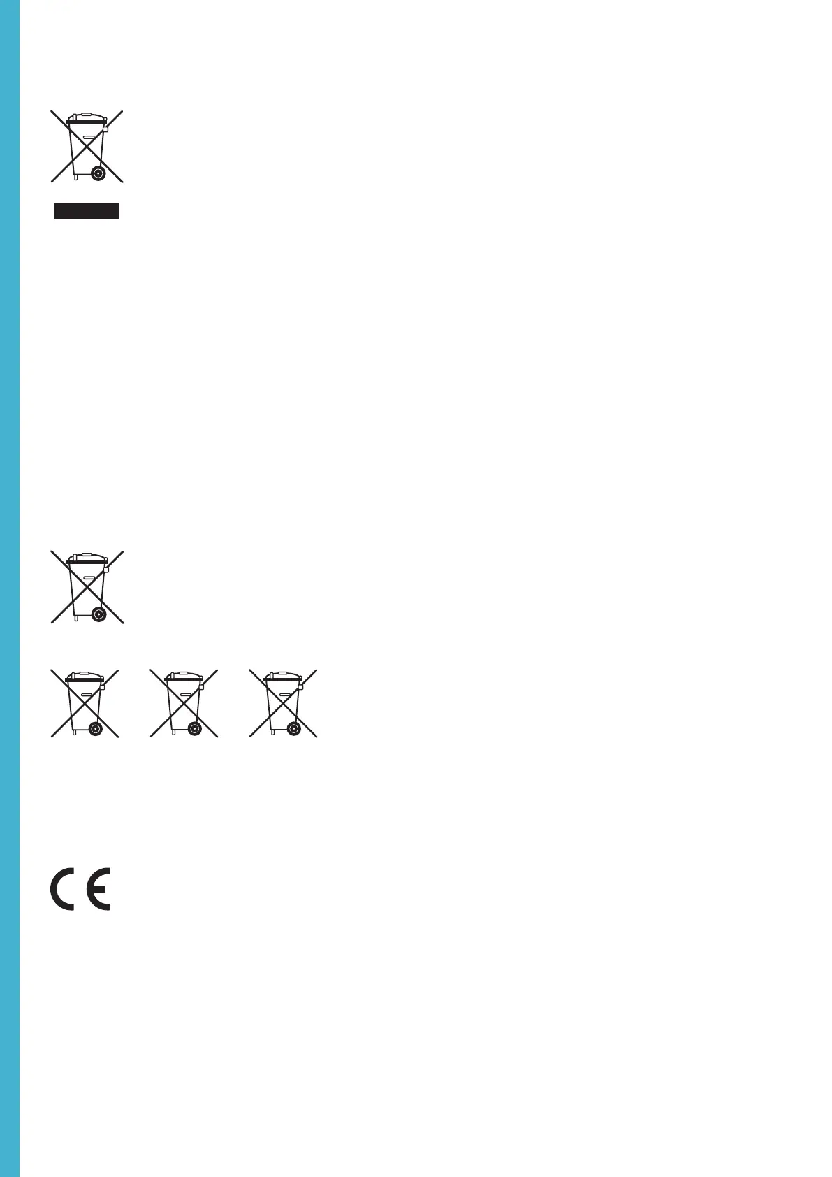 air pressure or dispose of in fire or water. Replace only with specified batteries. The symbol indicating ‘separate collection’ for all batteries