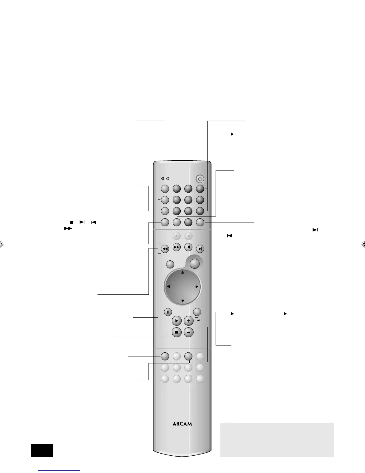 Adjusts the volume on Arcam remote-controllable ampli ers.