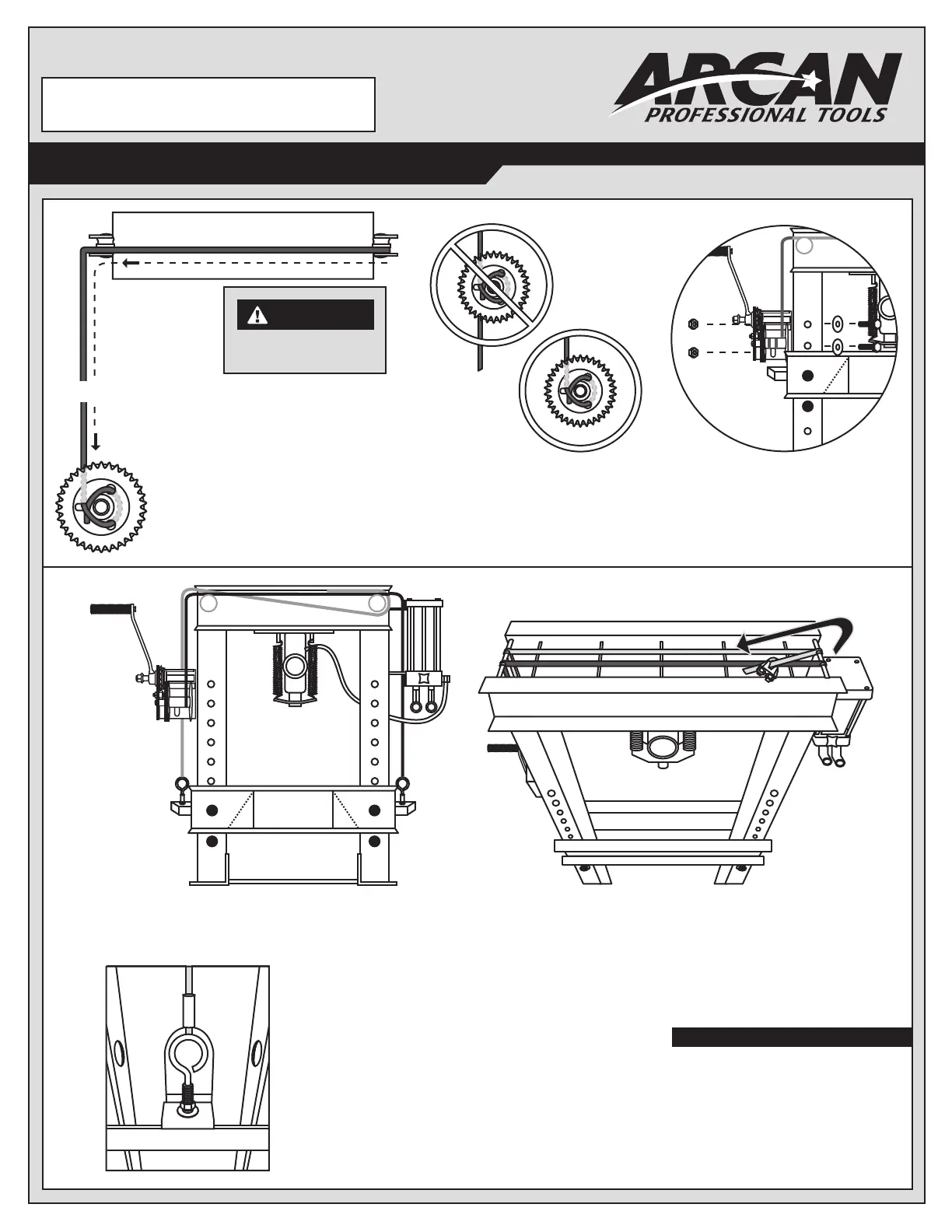 9. Turn eye hooks to adjust and level press bed. Once bed is level,