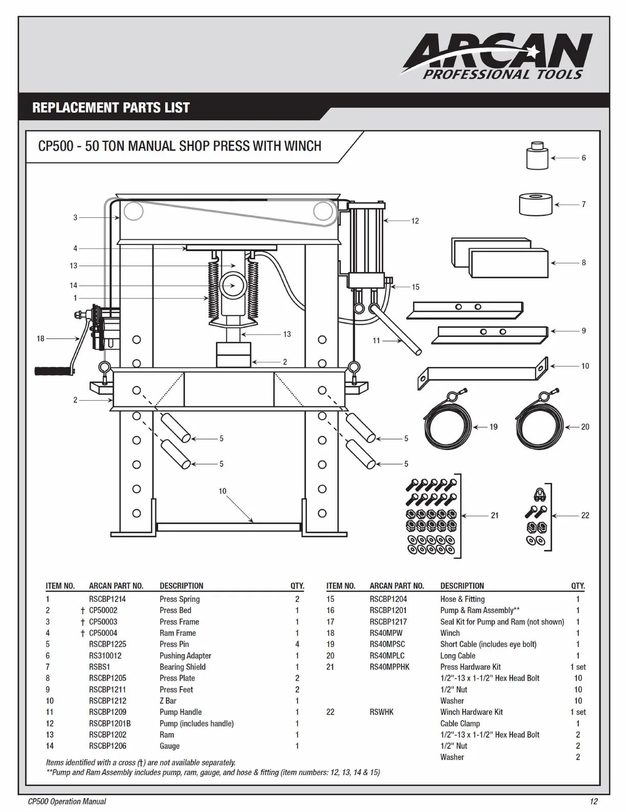 Arcan CP500 - Replacement Parts List
