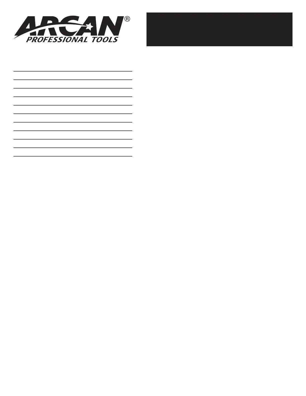to that specific product. This product carries a ONE-YEAR warranty. During this warranty period, Arcan® Professional Tools will repair