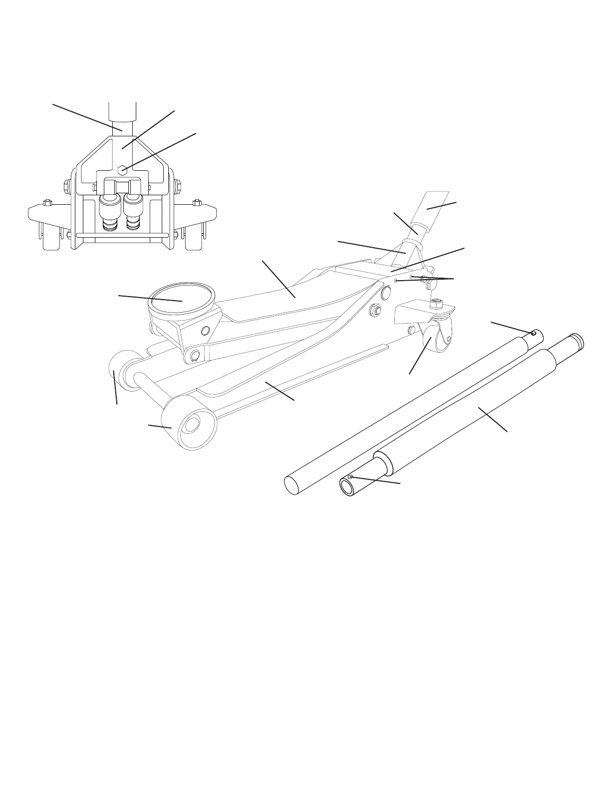 Visual inspection should be made before each use of the jack, checking for leaking hydraulic uid and damaged, loose or missing parts. Any