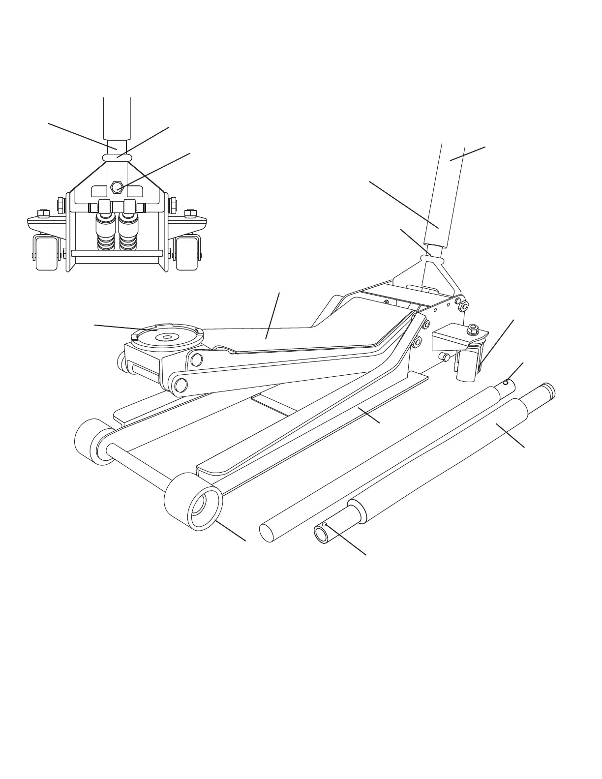 Visual inspection should be made before each use of the jack, checking for leaking hydraulic uid and damaged, loose or missing parts. Any