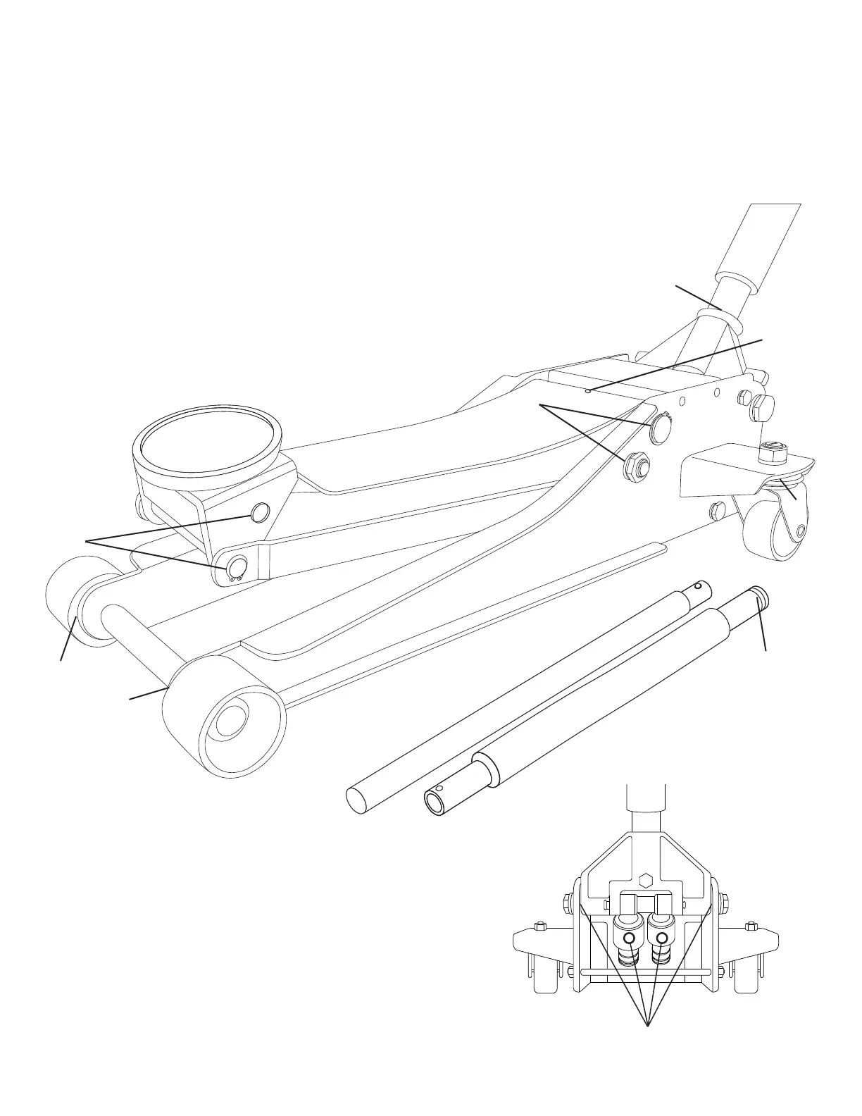 IMPORTANT: Service jacks are designed for lifting purposes only; always support raised load with jack stands.