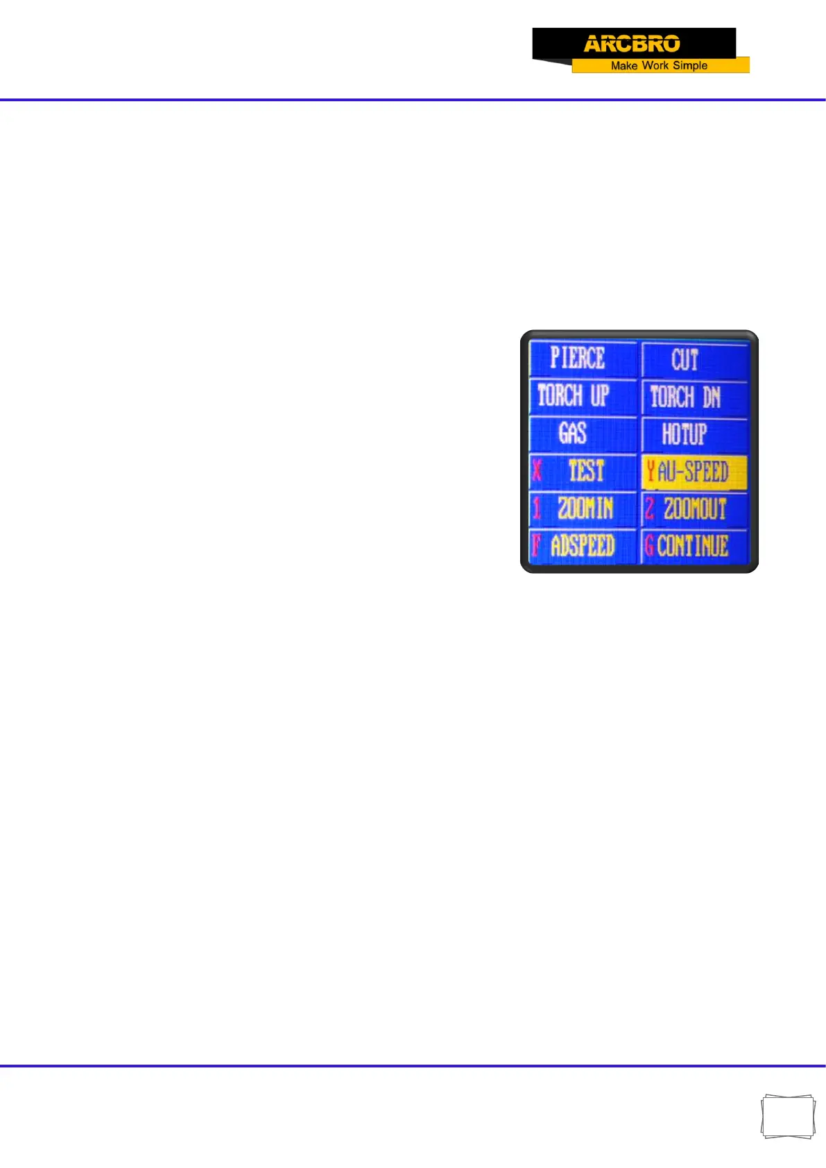 【S↓】: Push it down to lower the cutting torch and release to stop the torch.