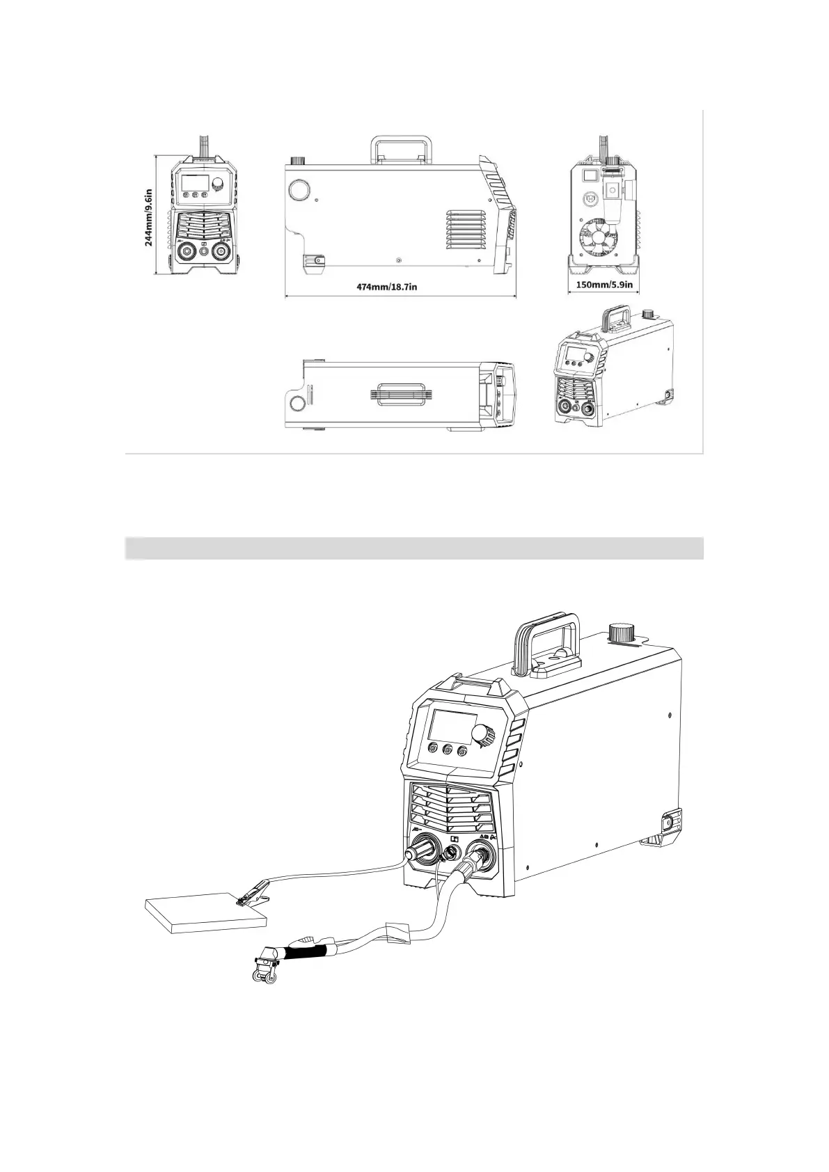 Pic 1 Appearance and size of the machine (Unit: mm /inch)