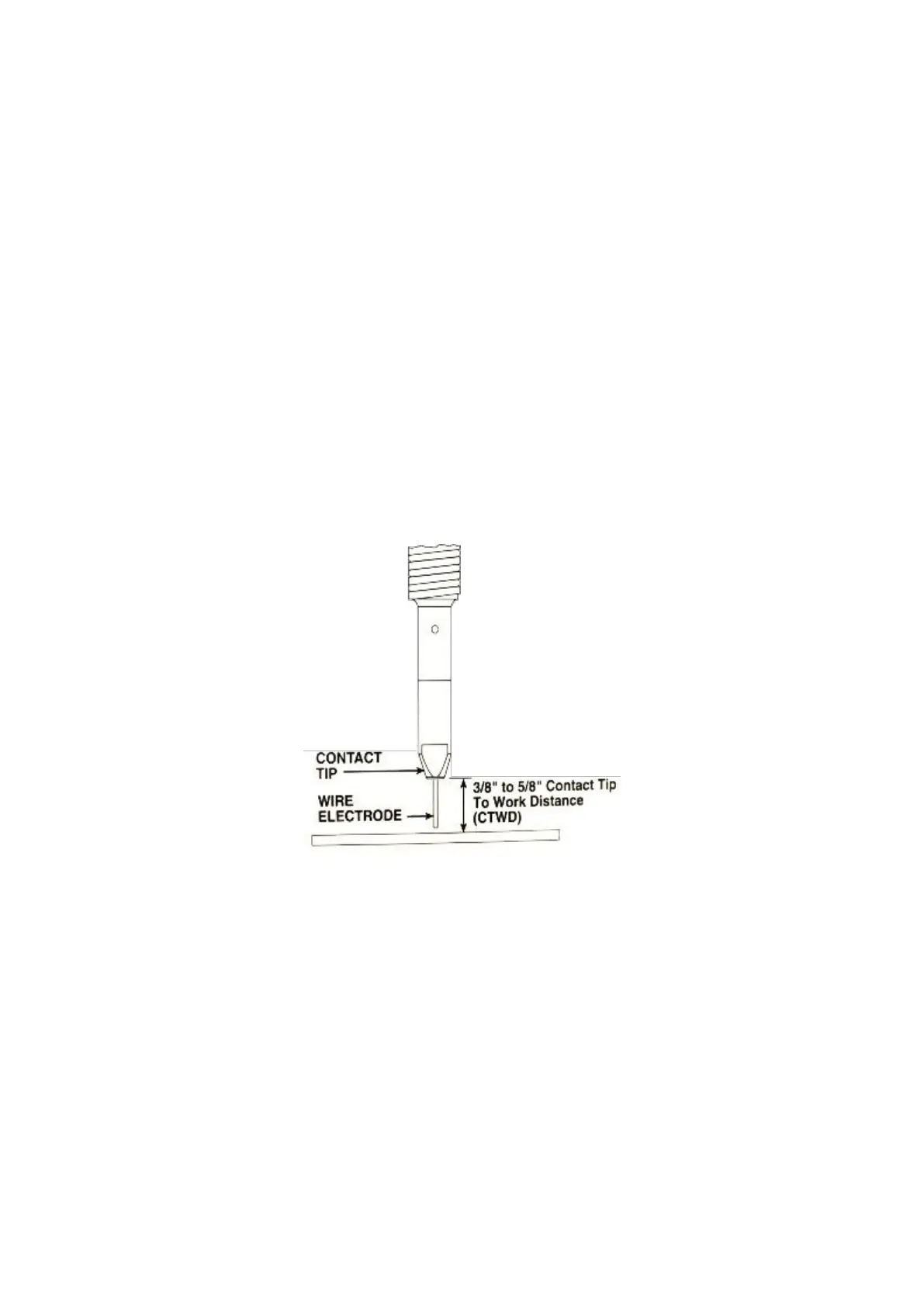 12) Install the nozzle and contact tip. Refer to Figure 4. Cut the wire off so the 3/8” to 5/8”(10-15mm)