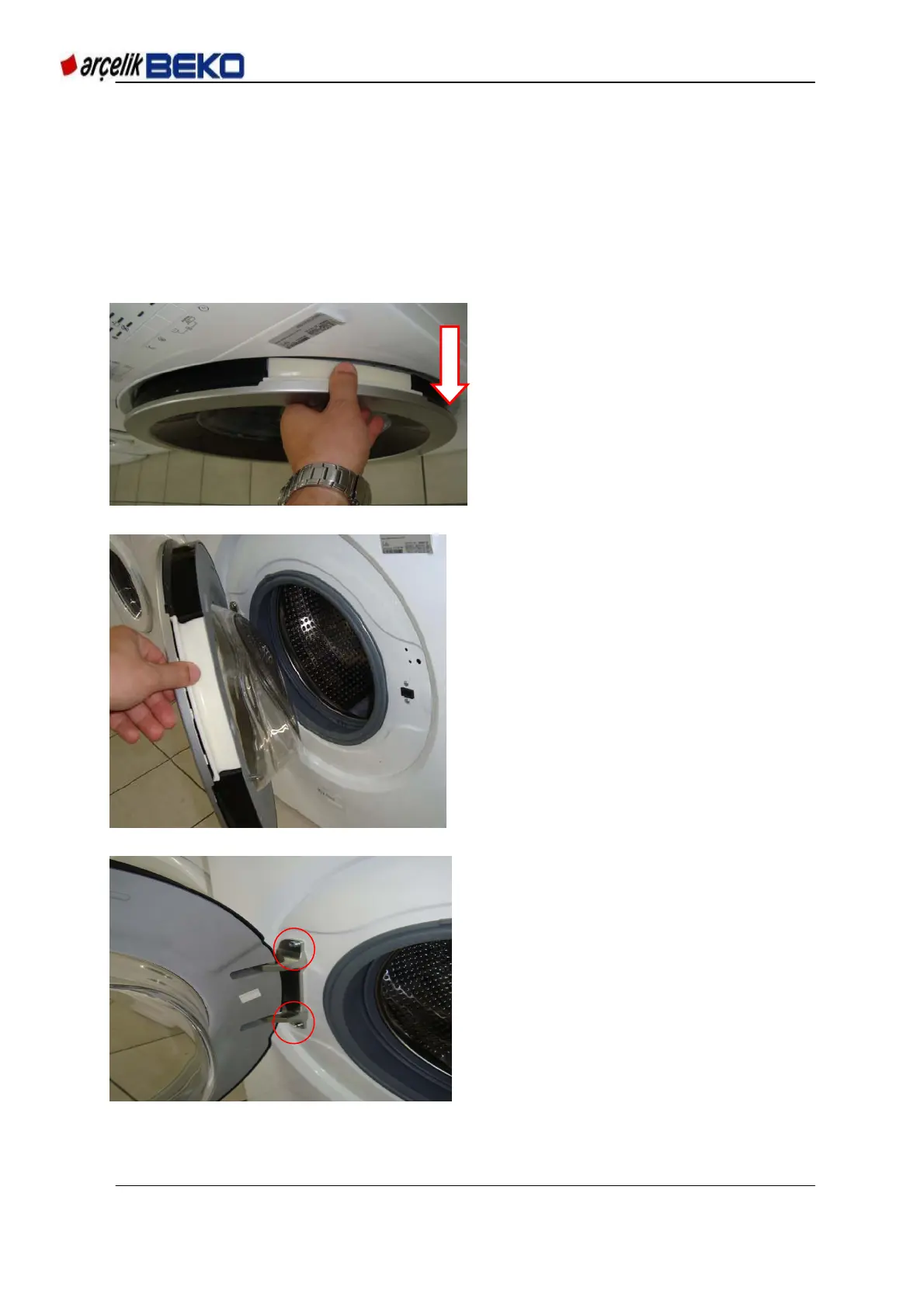2 hinge screws which connect the hinge to the front wall are removed and the hinge is