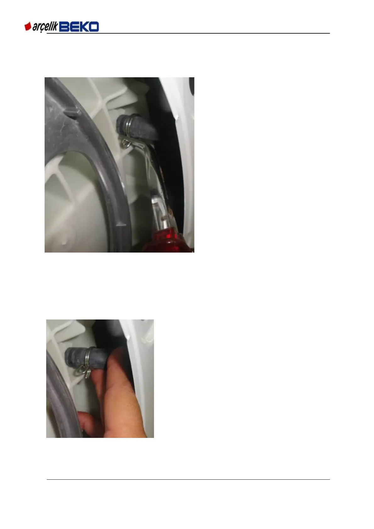 Bracket on the steam hose end at the drum side will be removed by needle pliers to remove