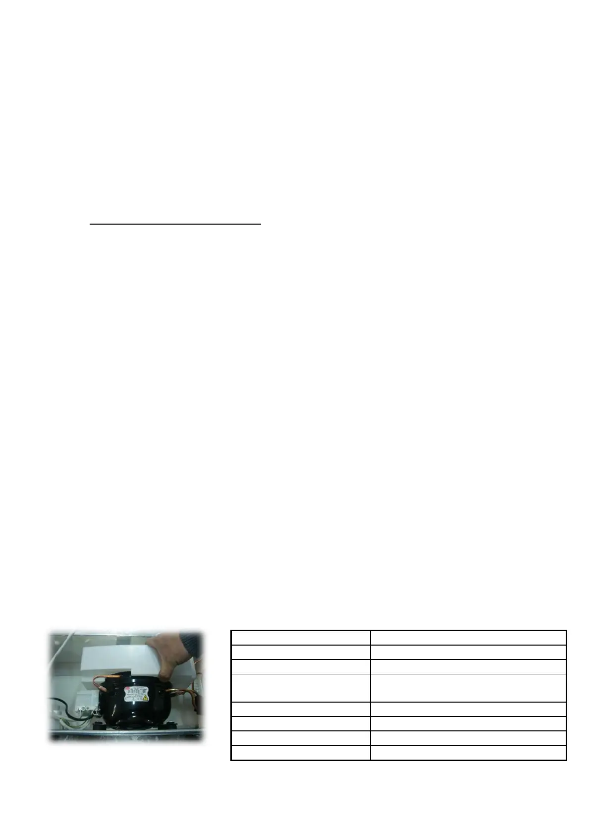 operation current, 120 kCal/hour cooling capacity values are valid for the compressor used in 60 cm
