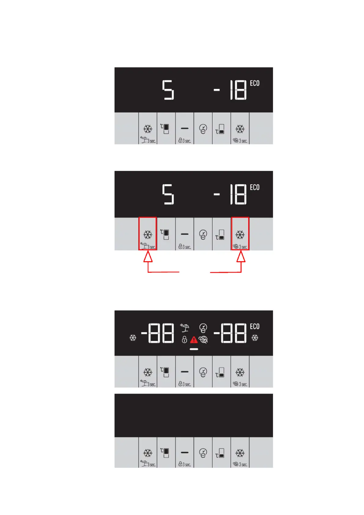 Within the first 30 seconds after the refrigerator is energized, it can be taken to the Service Mode by simultaneously pressing Quick Cool