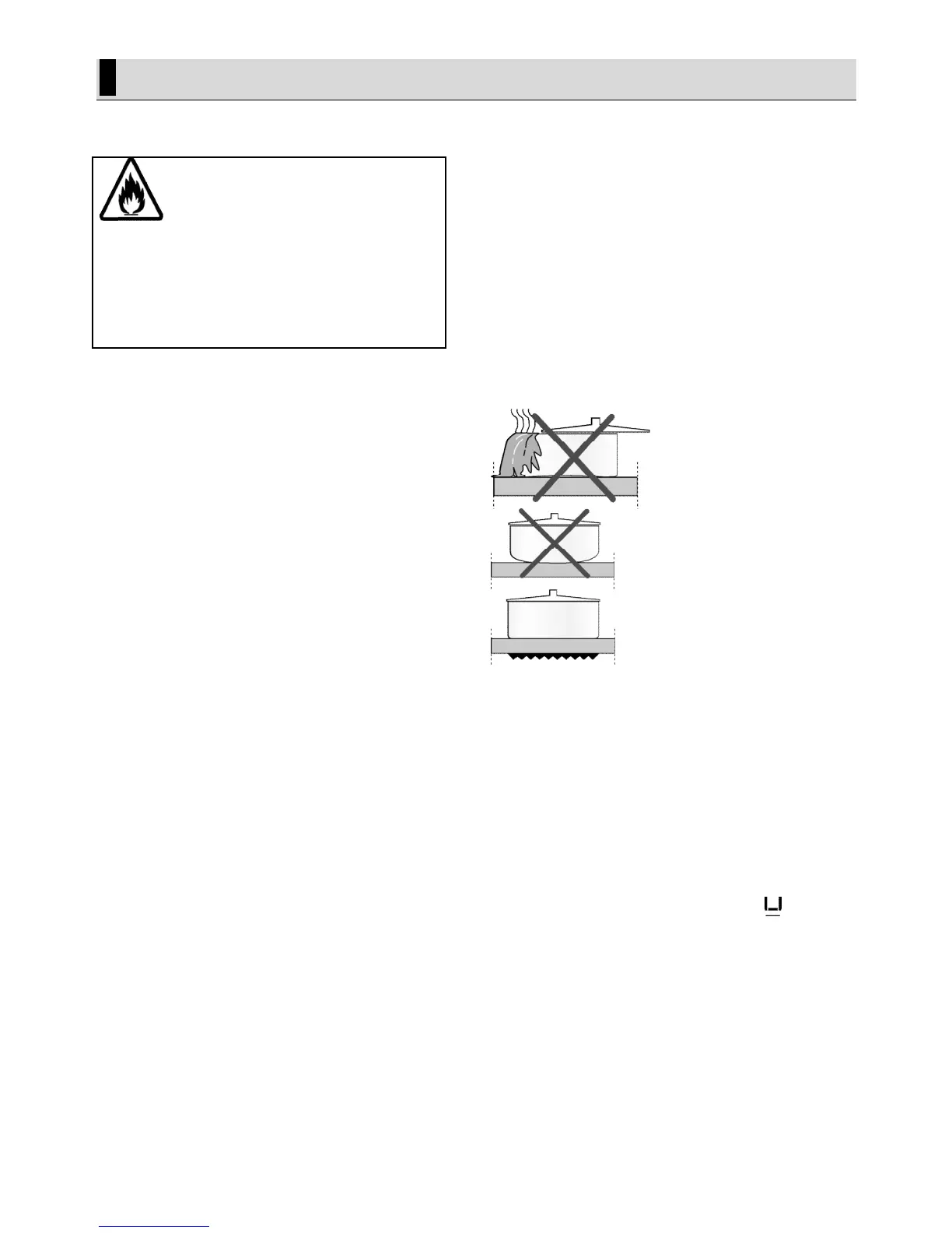 • Use flat bottomed saucepans or vessels only.