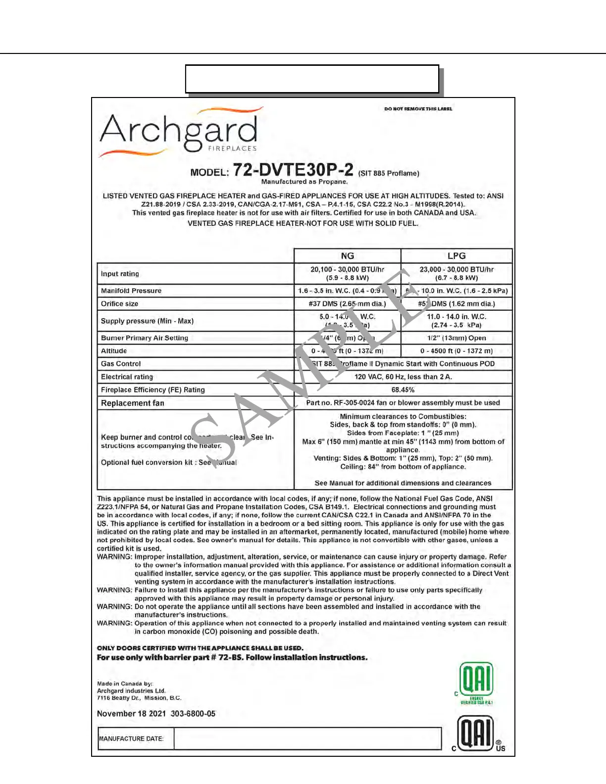 RATING PLATE SAMPLE