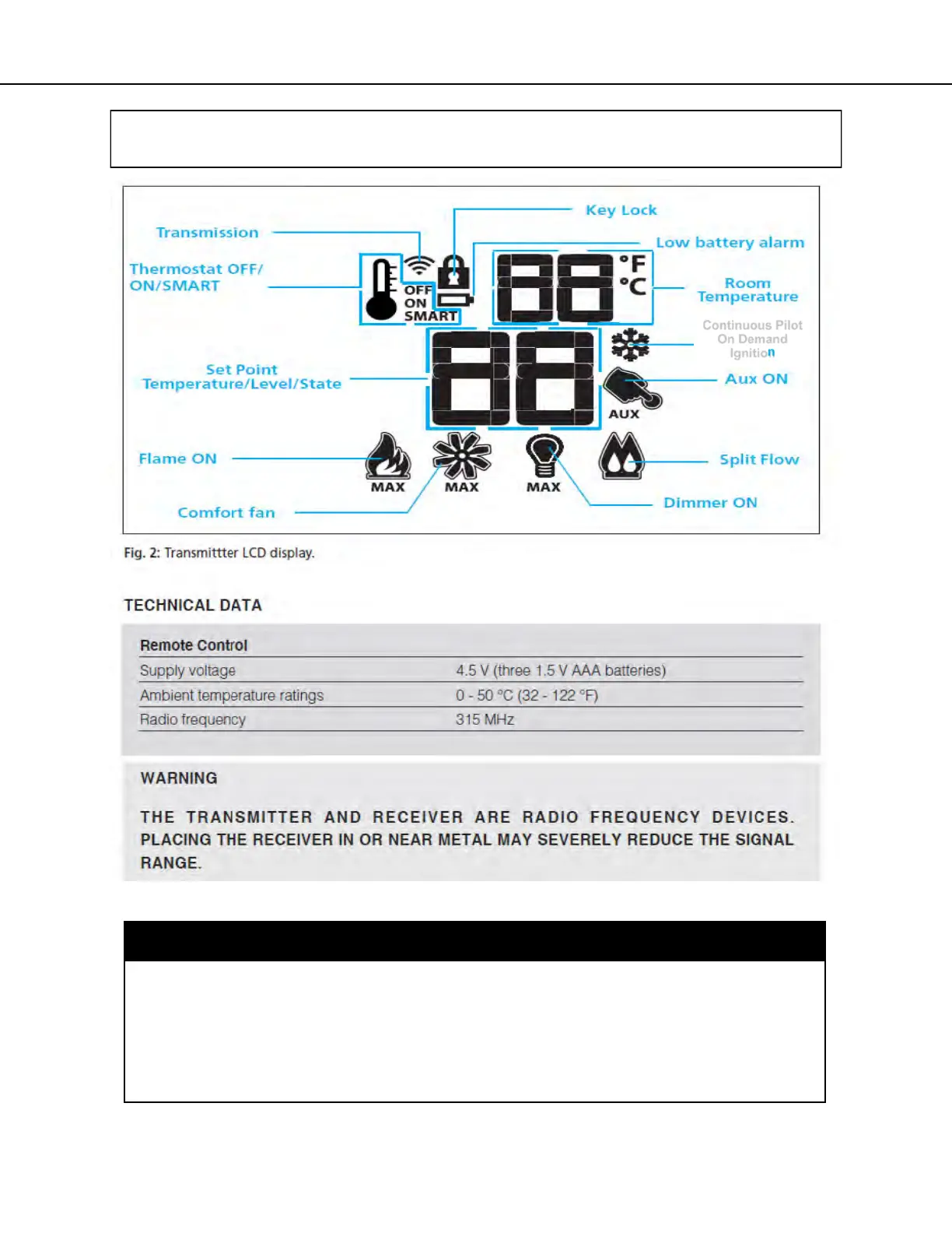 IN CASE OF REMOTE CONTROL MALFUNCTION TURN OFF THE FIREPLACE BY REMOVING