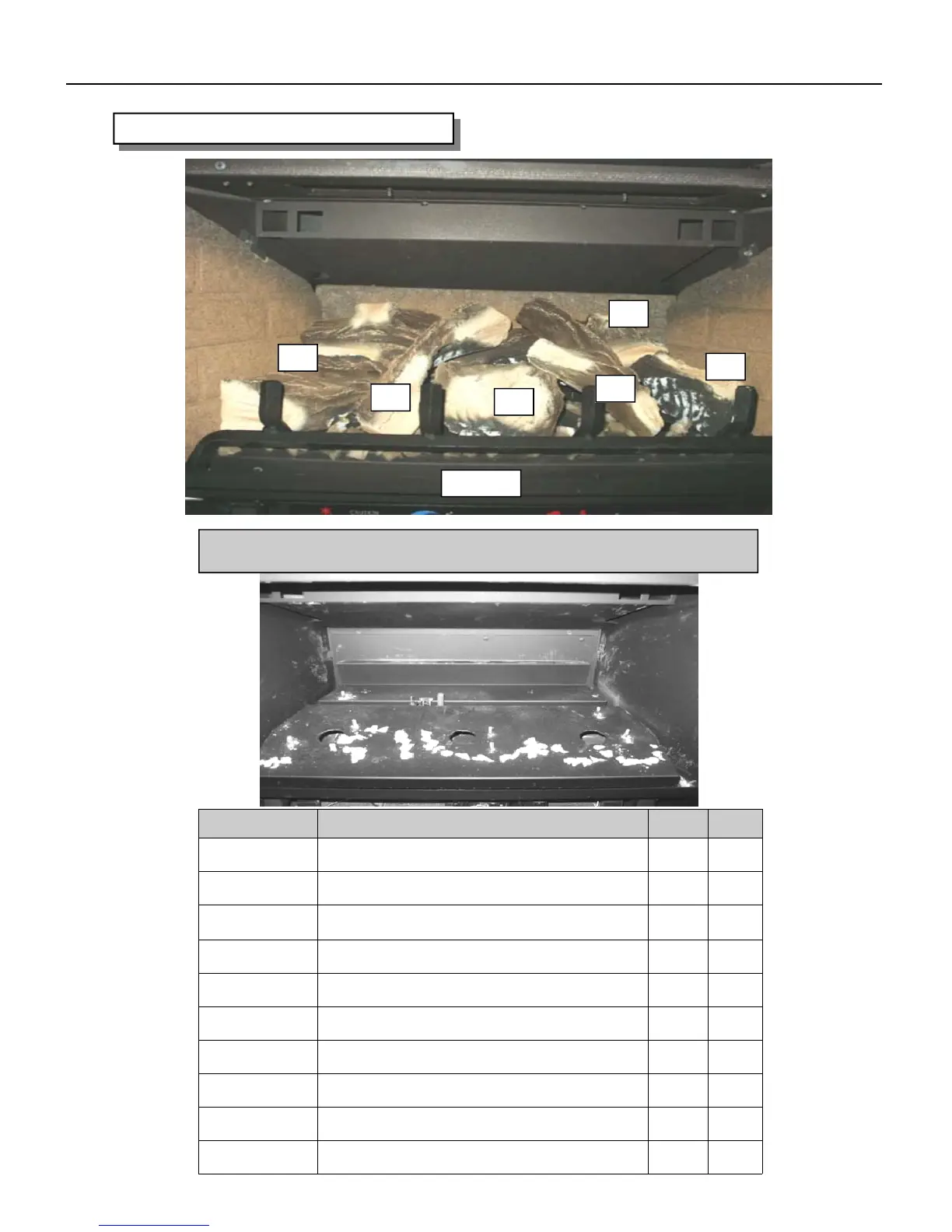 PARTS LIST - Logs and Pan Burner