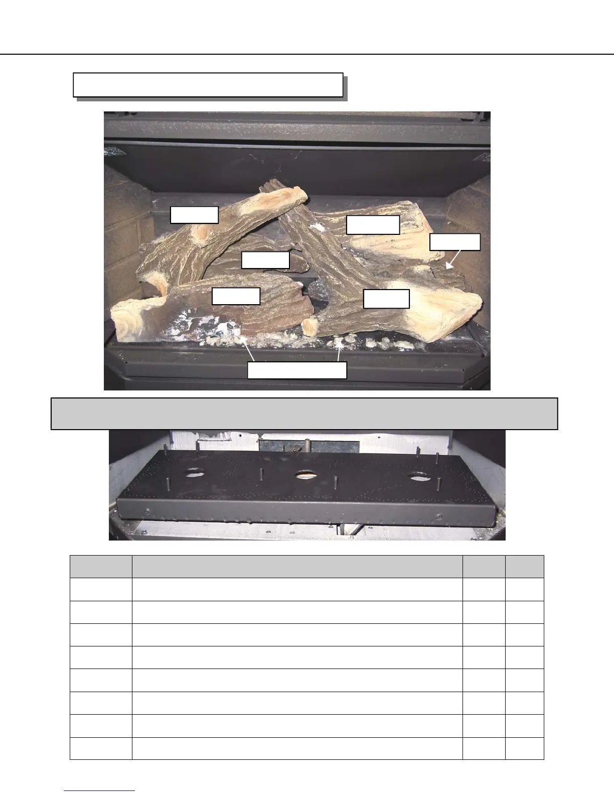 PARTS LIST - Ceramic Logs and Burner Pan