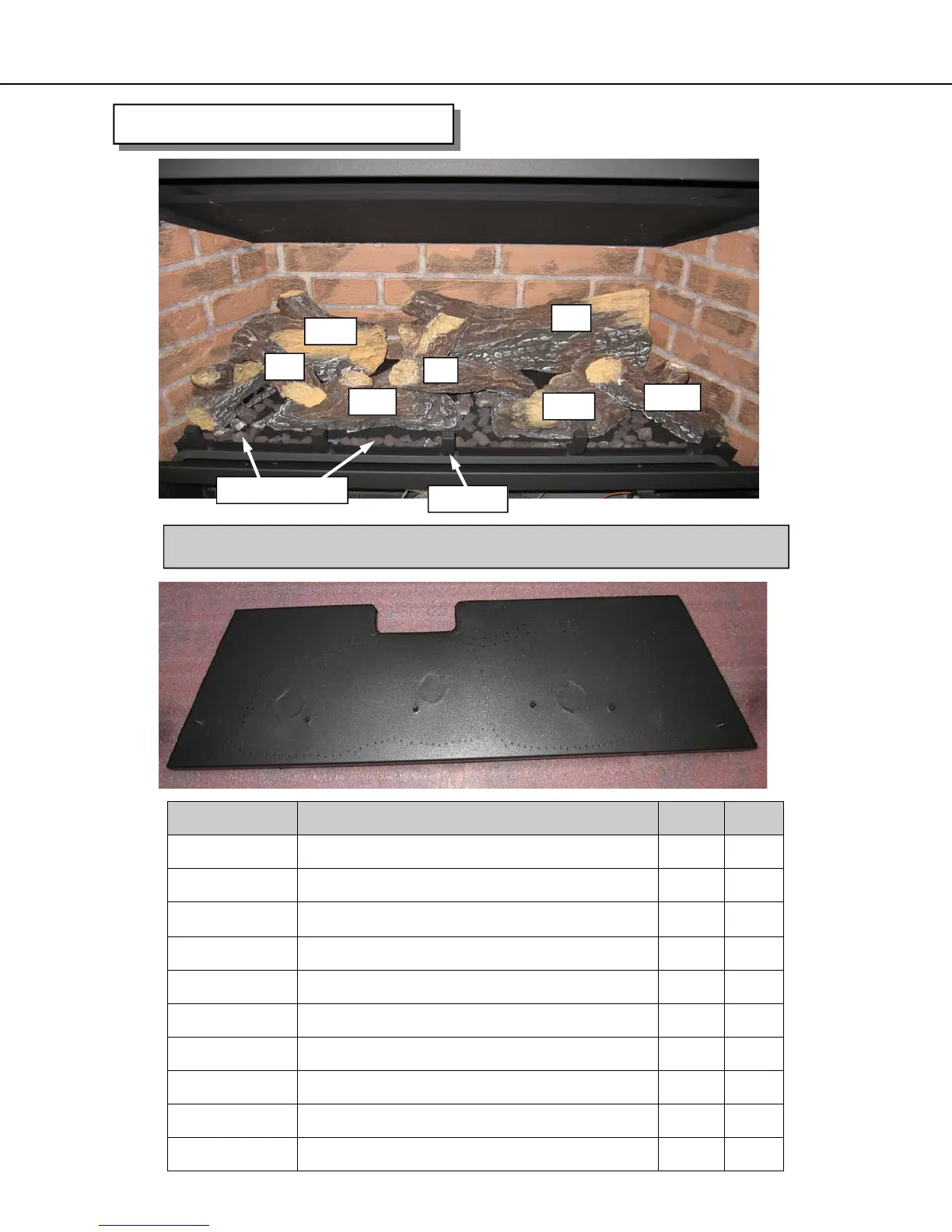 PARTS LIST - Logs and Pan Burner