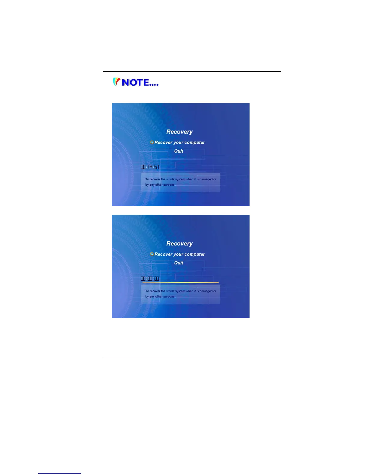 The system will start with the recovery procedures.