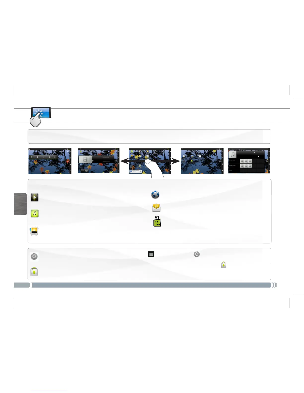 Schermo intero: Far scorrere il dito orizzontalmente sullo schermo per navigare fra i 5 pannelli della schermata principale estesa.