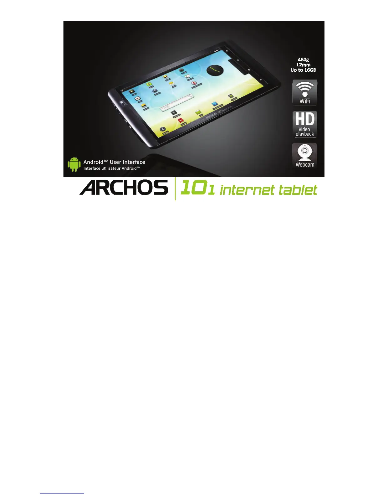 technology with overmoulded stainless steel structure the ARCHOS 101 internet tablet weighs only