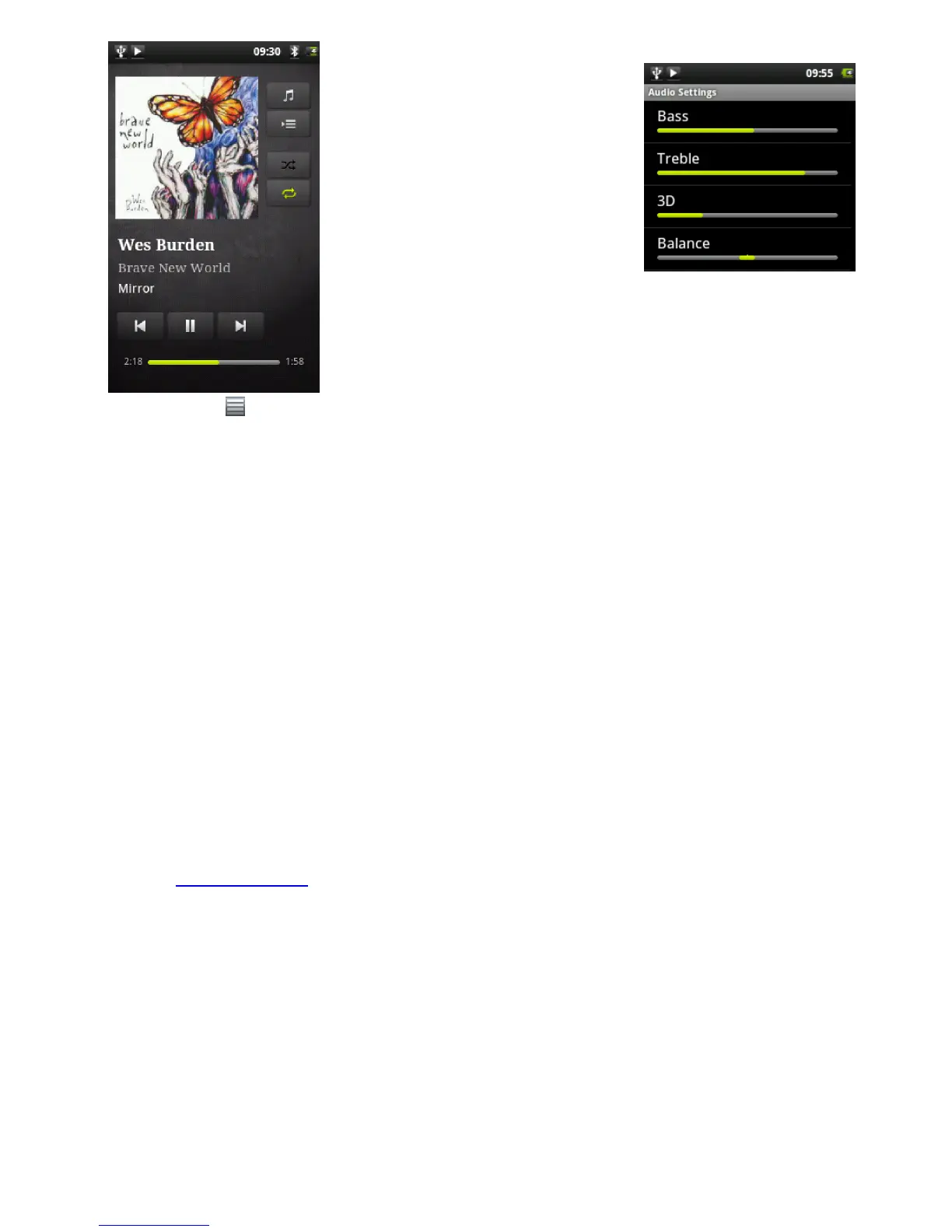 The music playback screen includes the standard playback controls.