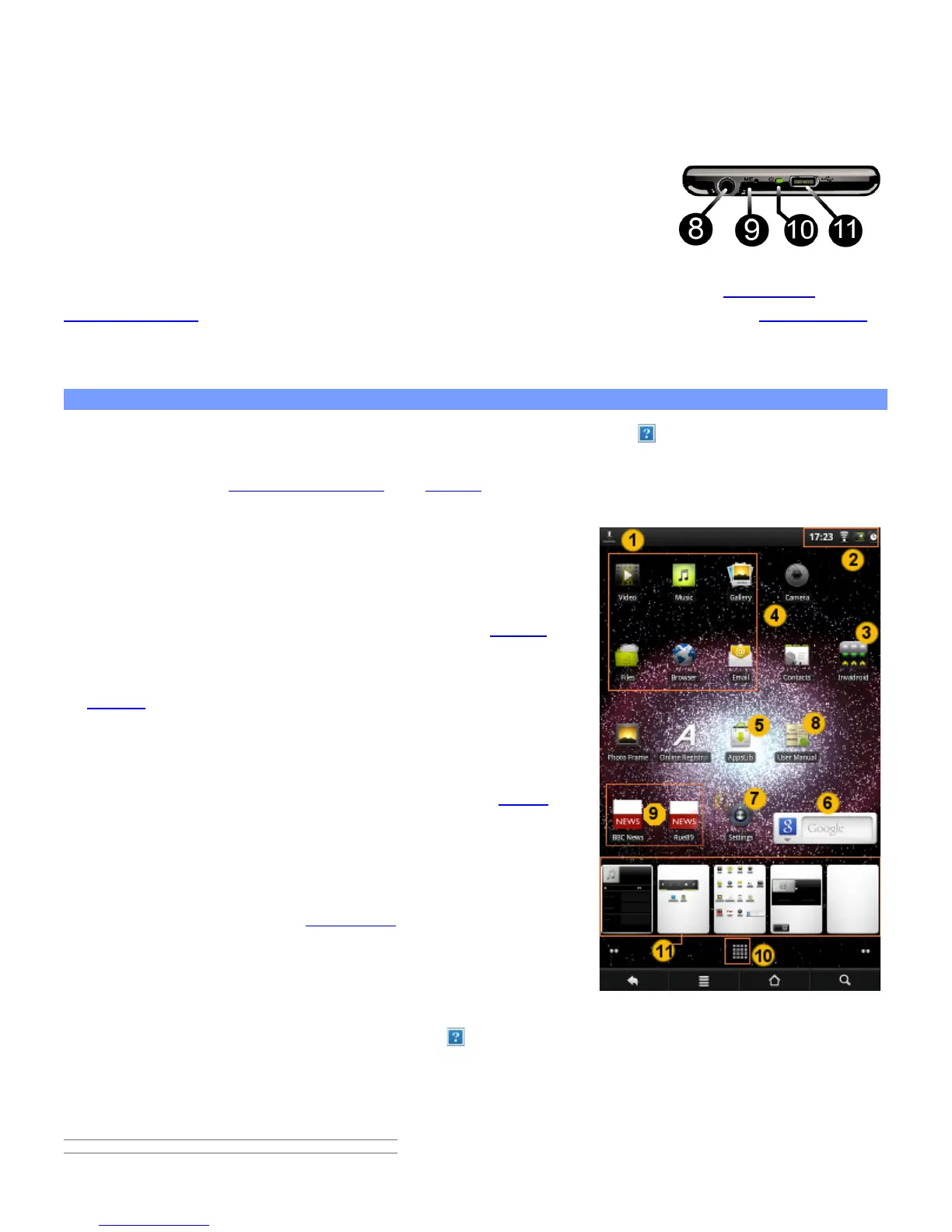 11. USB jack: To connect your ARCHOS to your computer using the supplied USB cable (to transfer files and