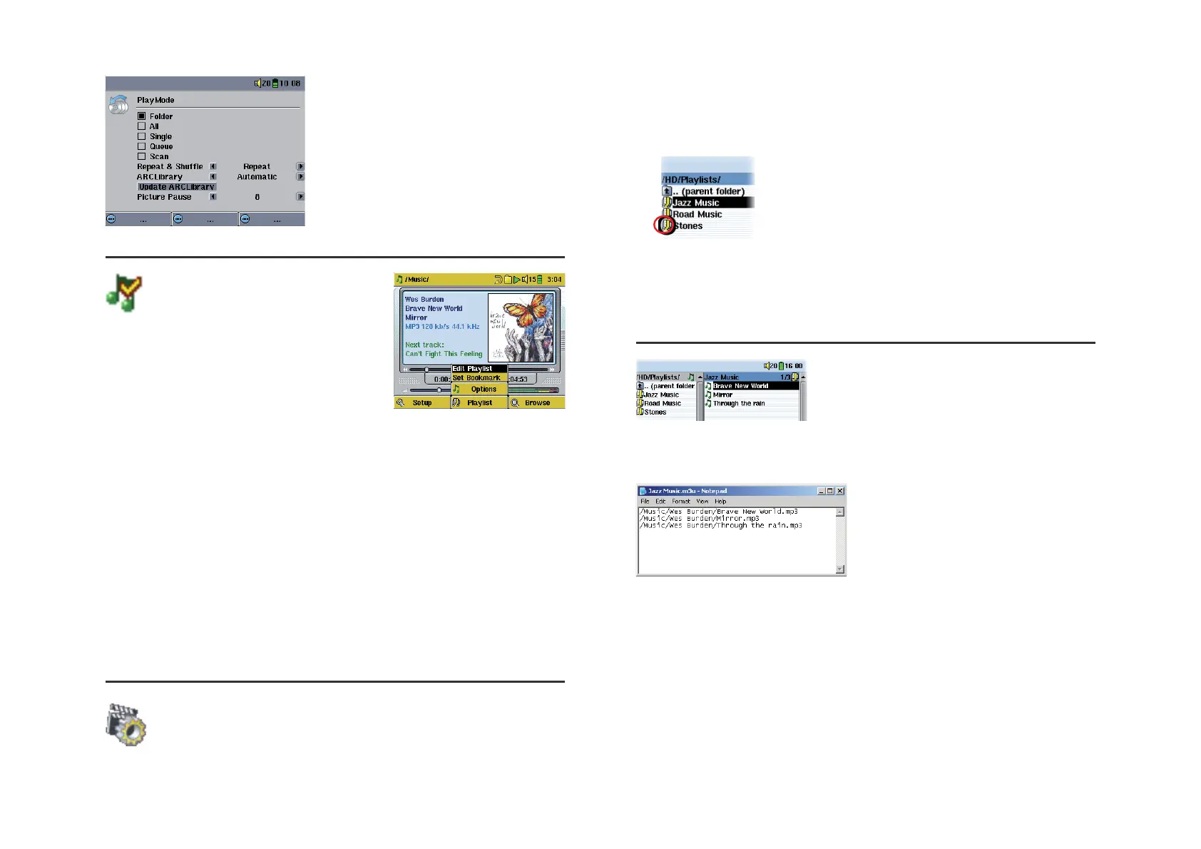 402 hard disk. Playlists are indicated by a special list icon (circled